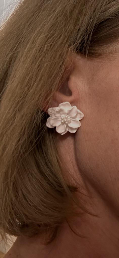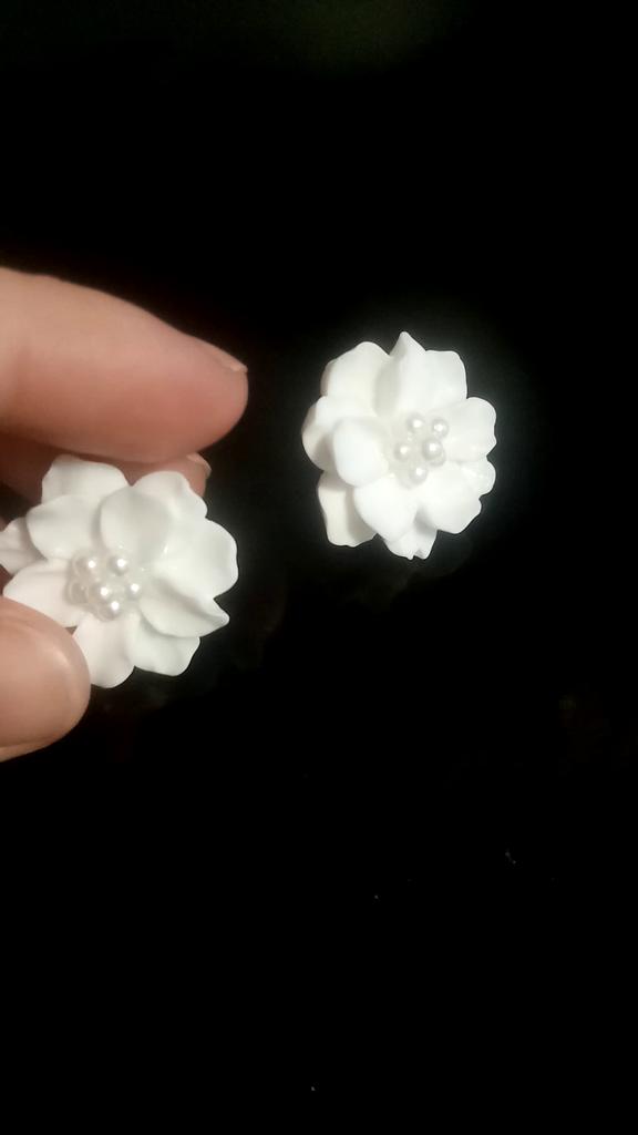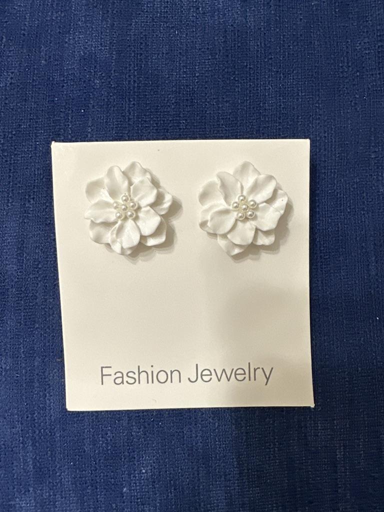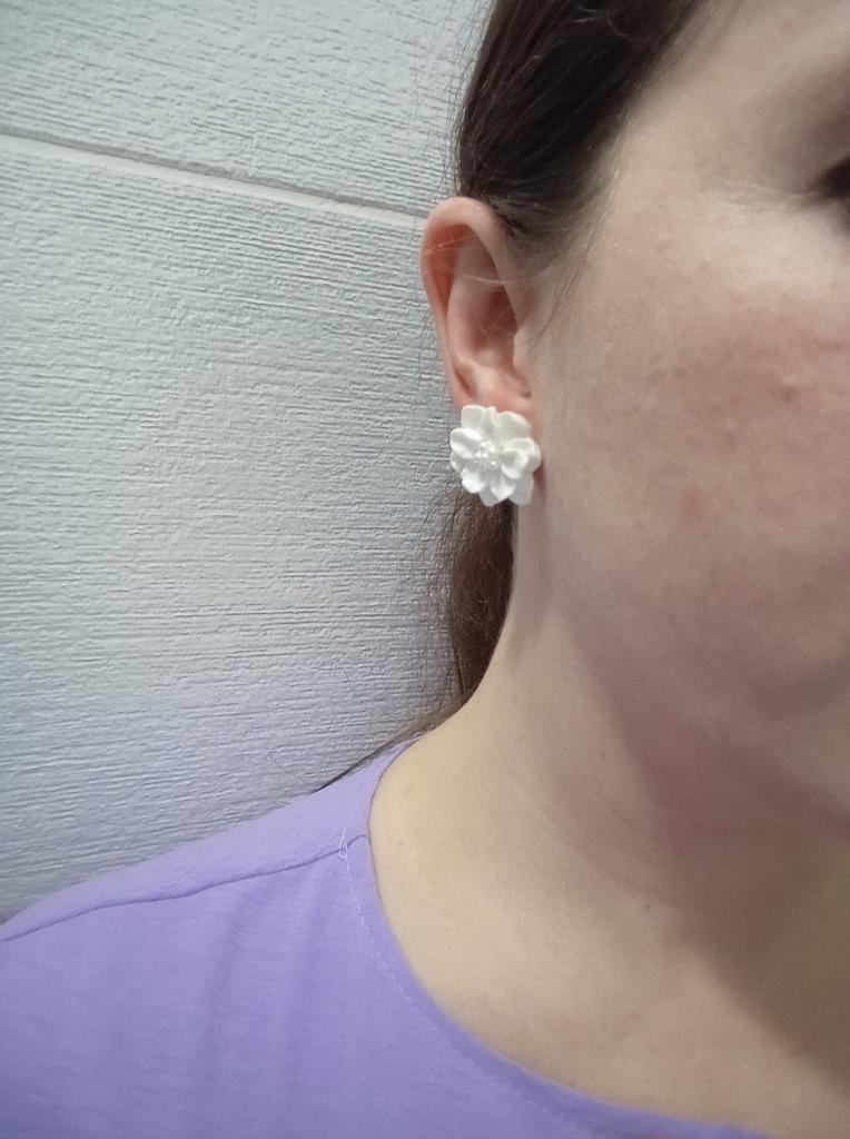 Módní bílé květinové antialergické náušnice