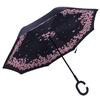 Dvouvrstvý deštník s rukojetí ve tvaru C, skládací, obrácený, větruodolný