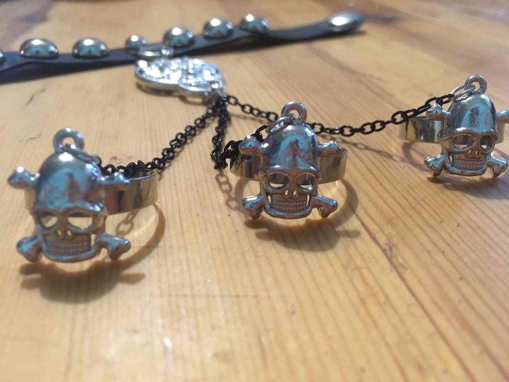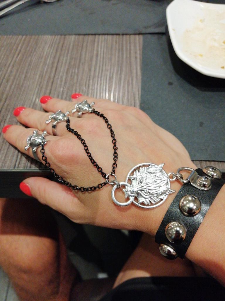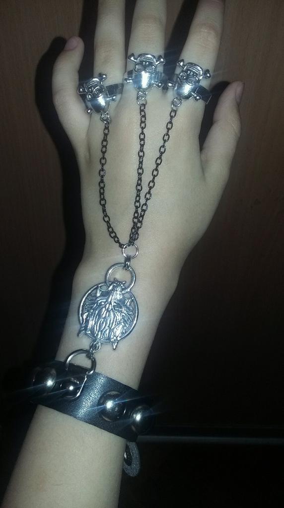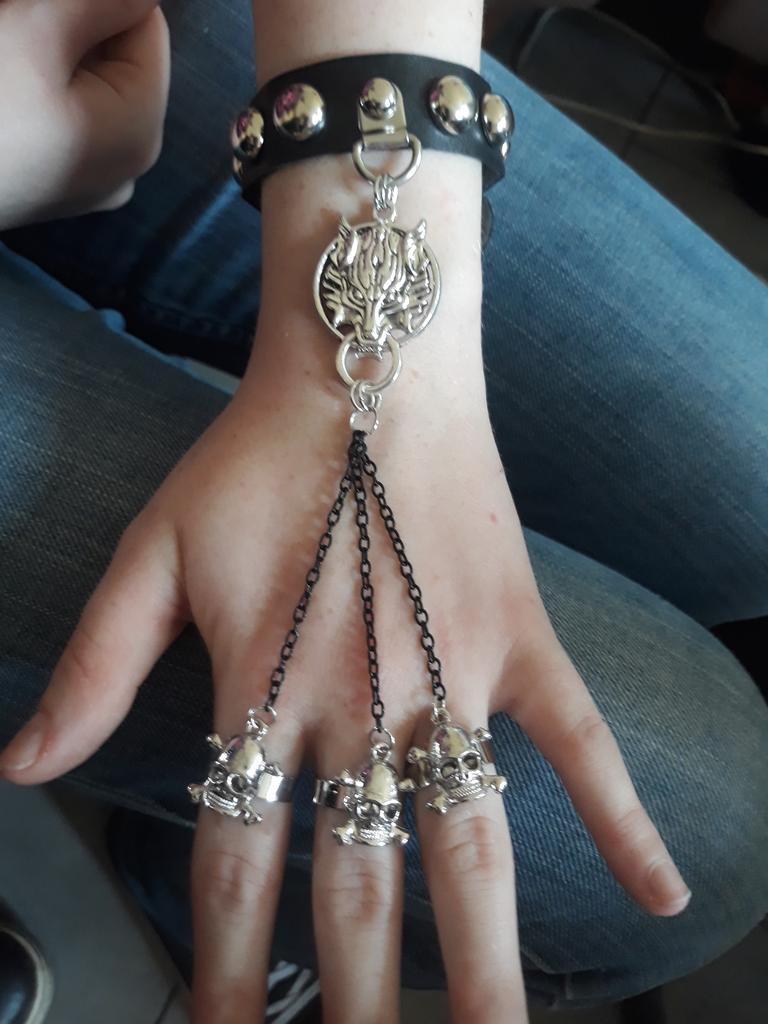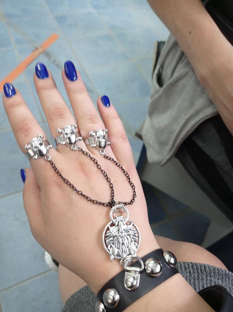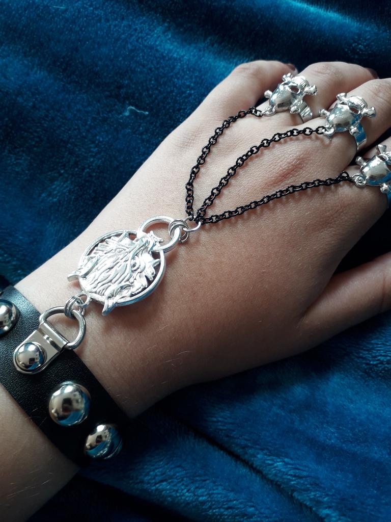 Elegantní módní šperky Gotická lebka Vlčí řetízky na ruce Kožený náramek Prsty na ruce Prstencový náramek