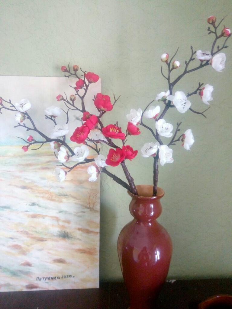 Koupila jsem si dvě větvičky - bílou a červenou. Vypadají pěkně, ale výrobce by měl vyrobit minimálně 3 různé odlitky, protože dát do vázy více větviček najednou je nemožné. Vidíte, že mají stejný systém větvení, takže více než jedna větev na vázu vypadá uměle.