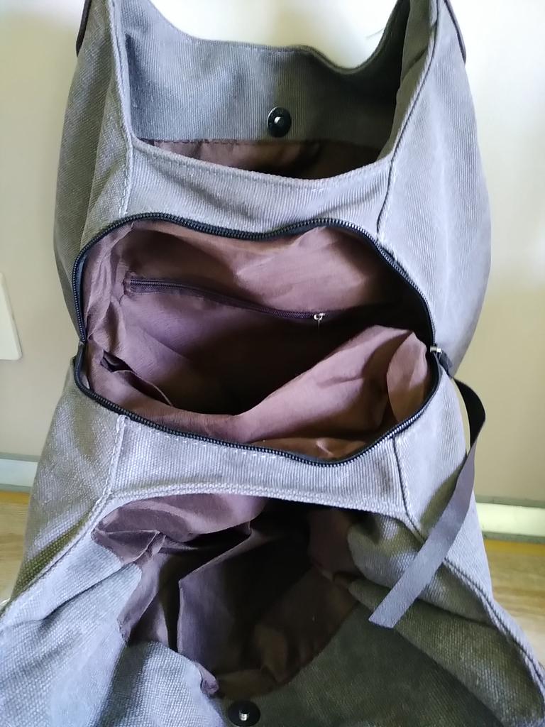 Barva jako v popisu, čekal jsem větší tašku, snad bude kapacitně dostačující. Taška má tři hlavní komory, jedna se zapíná na zip a ostatní na knoflík? Nevím jak se to jmenuje, je to vidět na třetí fotce.