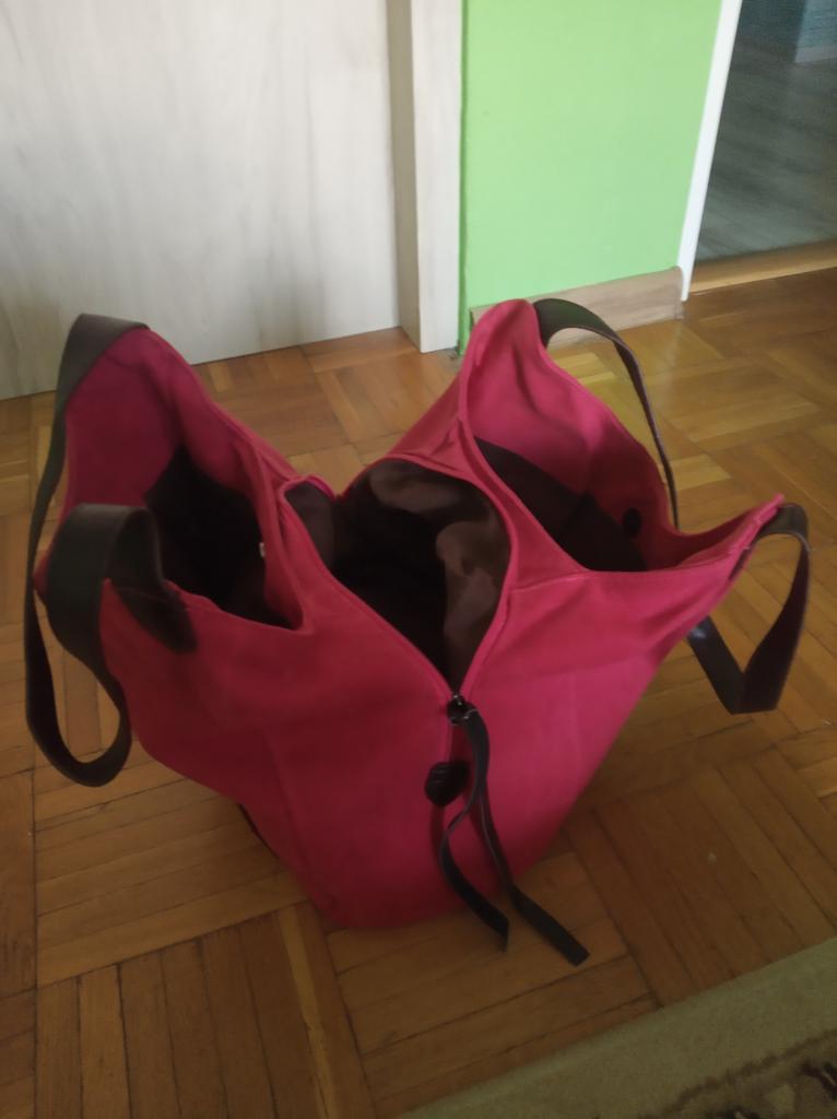 Moc pěkná plátěná taška, vím, že je ze semiše, dobrá velikost, pozor nemá popruh přes rameno, pěkná kapacita děkuji.