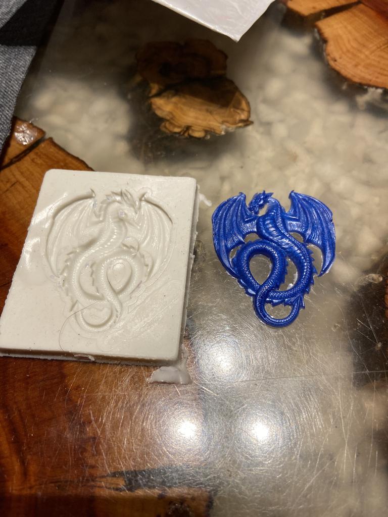 Silikonová forma na draka na pryskyřici, modelínu nebo polymerovou hmotu, vypadá dobře, ještě se musí vyzkoušet