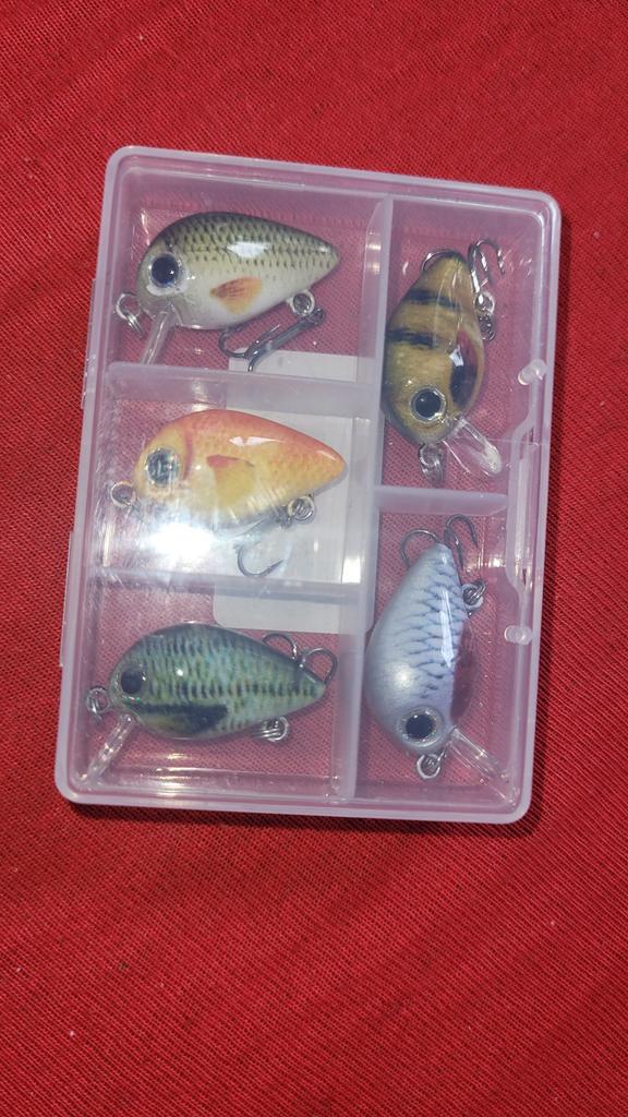 HENGJIA 5ks rybářská návnada Mini Crankbait Plovoucí wobler Sada rybářských háčků s krabičkou na rybářské potřeby