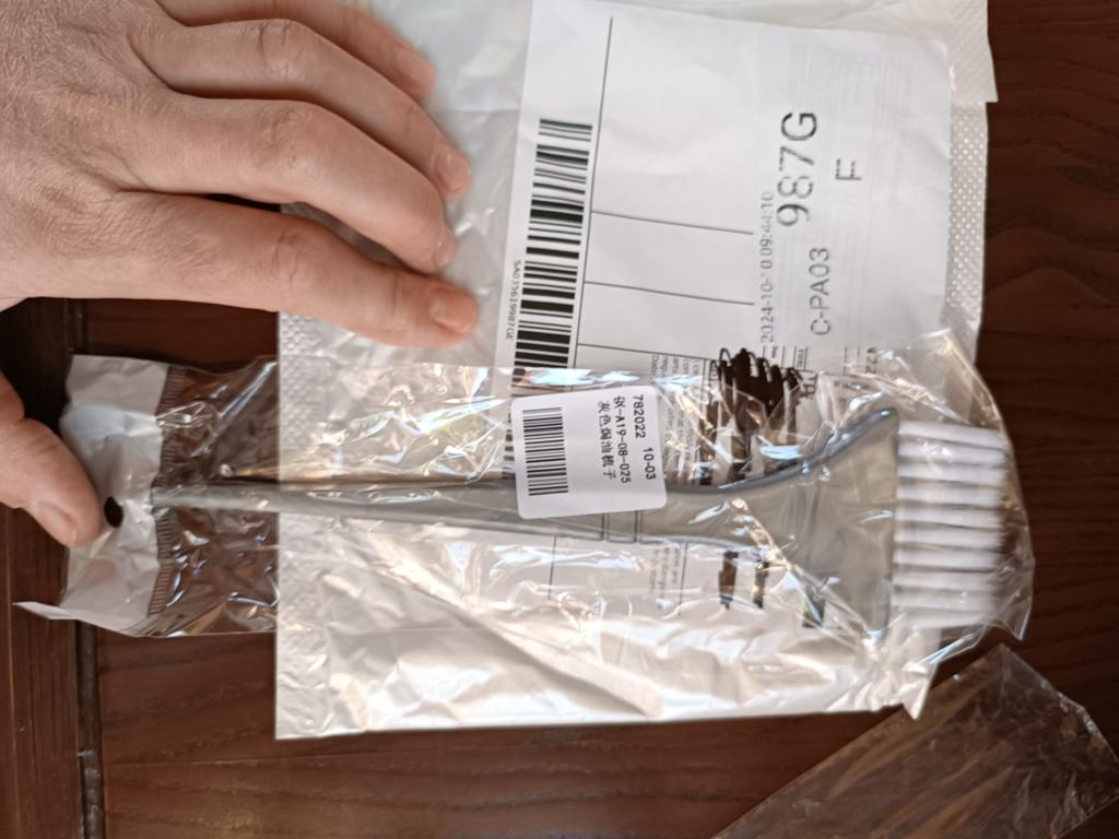Štětec není malý, má asi 25 cm, štětiny jsou pružné, pro malování dobrý.
