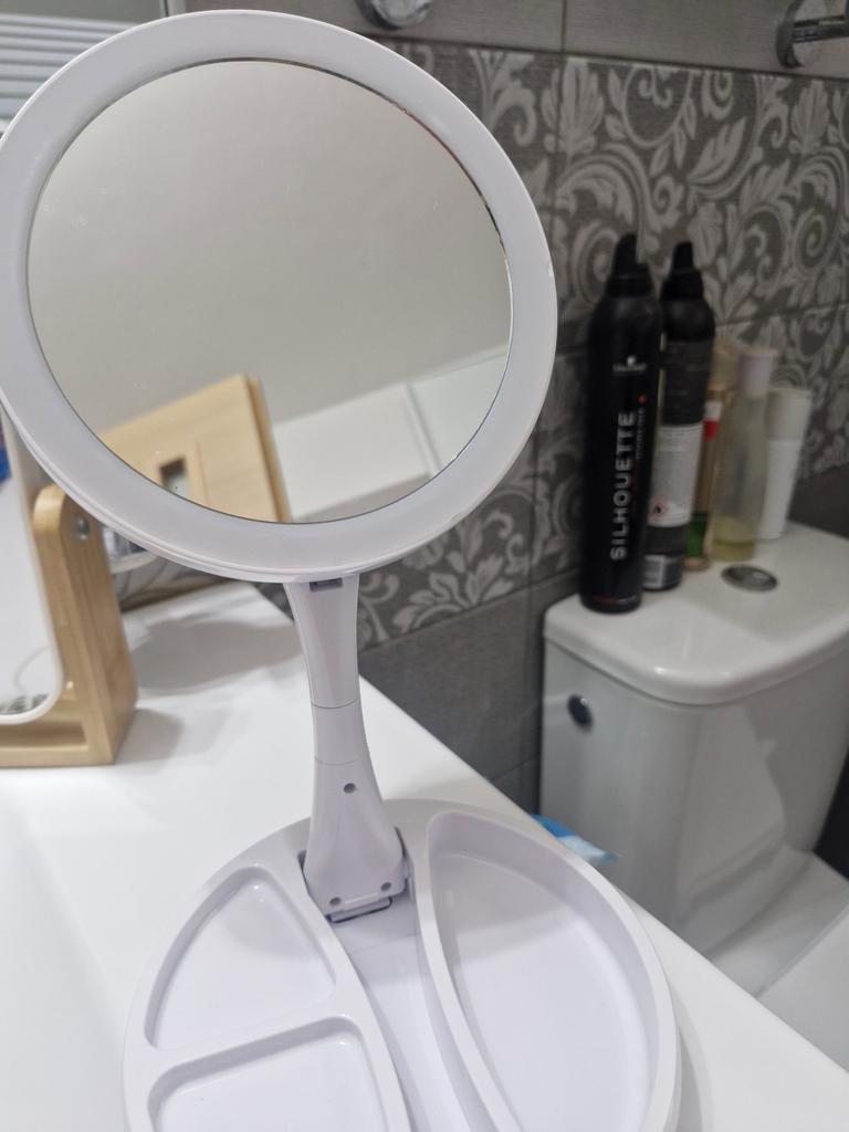 Moc pěkné zrcátko.Zvětšuje tak,že je vidět každý pór na obličeji.Podsvícení je světlé.Zklamalo mě jen,že jsem ho viděla včera v obchodě za 50hřiven.Levnější.