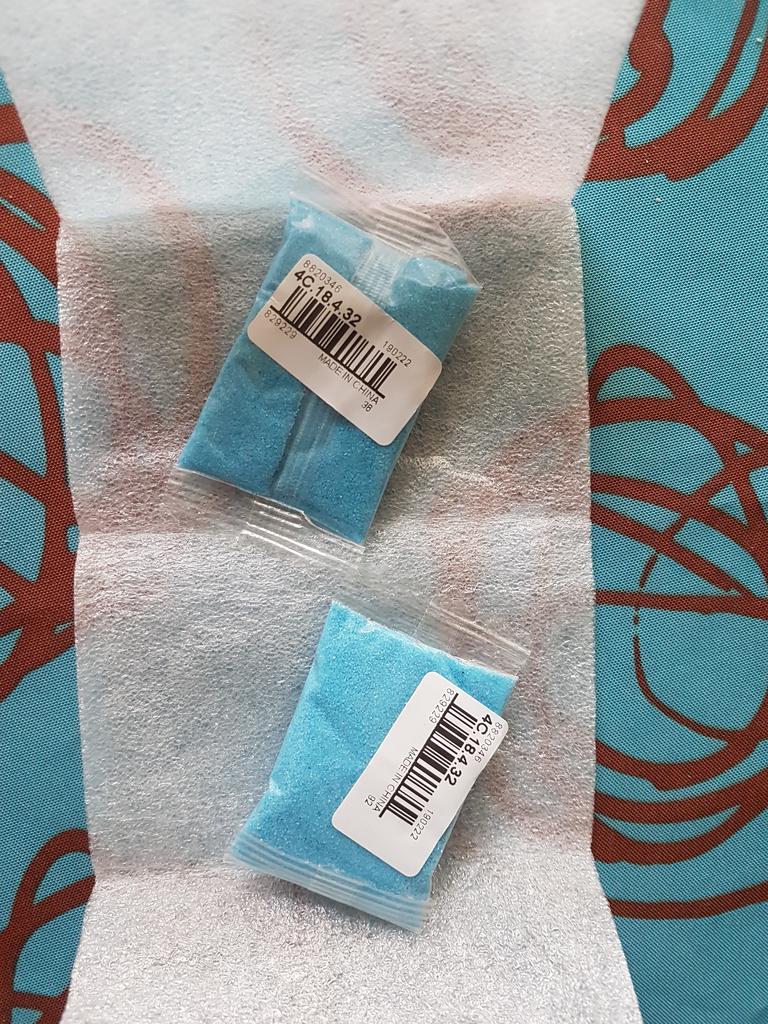 Dorazilo dříve než ostatní produkty objednané přibližně ve stejnou dobu. Jemný světle modrý prášek, jak je znázorněno na obrázku.