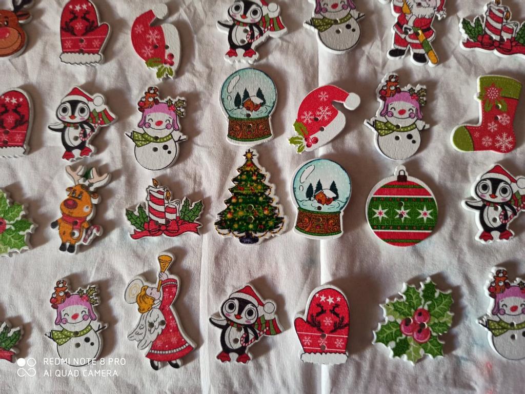50 ks/sáček 2 otvory Mix vánoční hvězda, dřevěné vánoční ozdobné knoflíky scrapbook