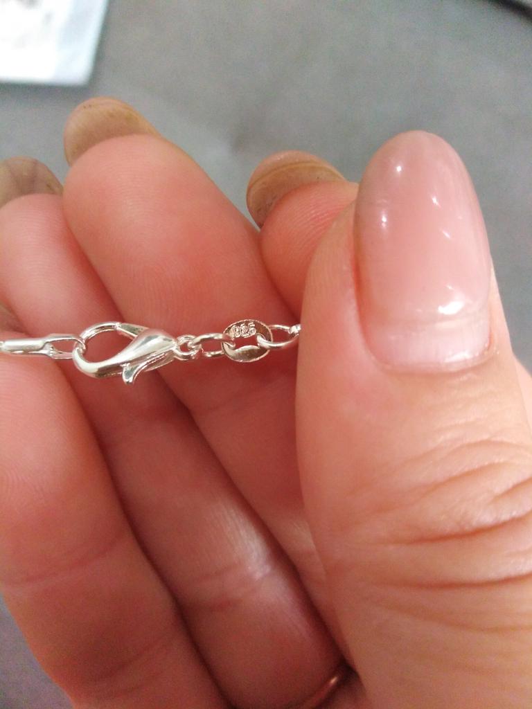 vypadá jinak než na obrázku (vypadá stejně jako na přiloženém obrázku), podle puncu je to stříbro 925, protože podle popisu by to měl být údajně řetízek z nerezové oceli, uvidíme