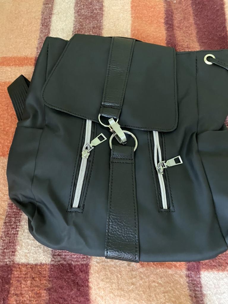 Pěkný batoh. Prostorný. Podle bohů jsou tam 2 kapsy. Dále jsou zde dvě kapsy na přední straně a malá kapsička na zadní straně. Všechny zámky jsou neporušené. Je tam věšák. Ramínka jsou nastavitelná.