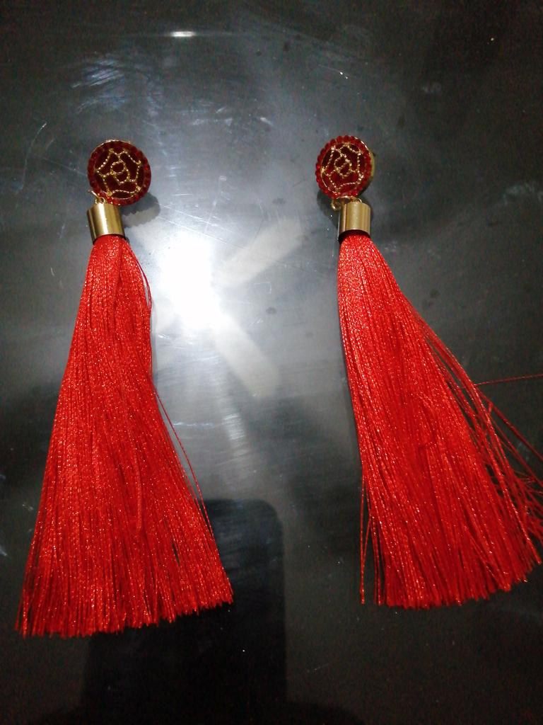 Bohémské střapcové náušnice Černá Bílá Modrá Červená Hedvábná tkanina Dlouhé visací náušnice pro ženy Šperky