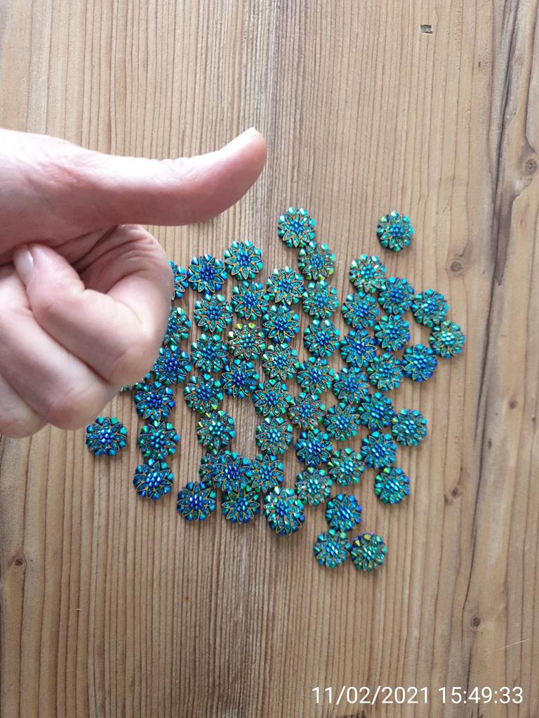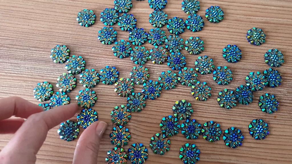 Fyzicky krásnější, jsou duhově zelené, dá se to ušít, je to z pryskyřice, velikost jako knoflík