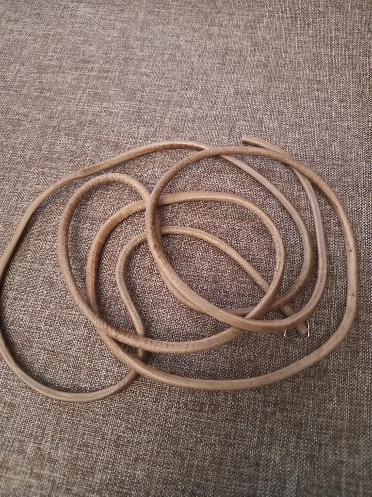 72" kožený opasek 183 cm starožitné díly šlapacích kol + háček pro šicí stroj Singer