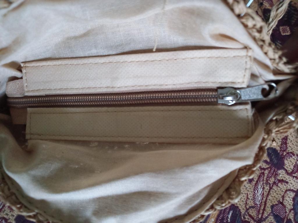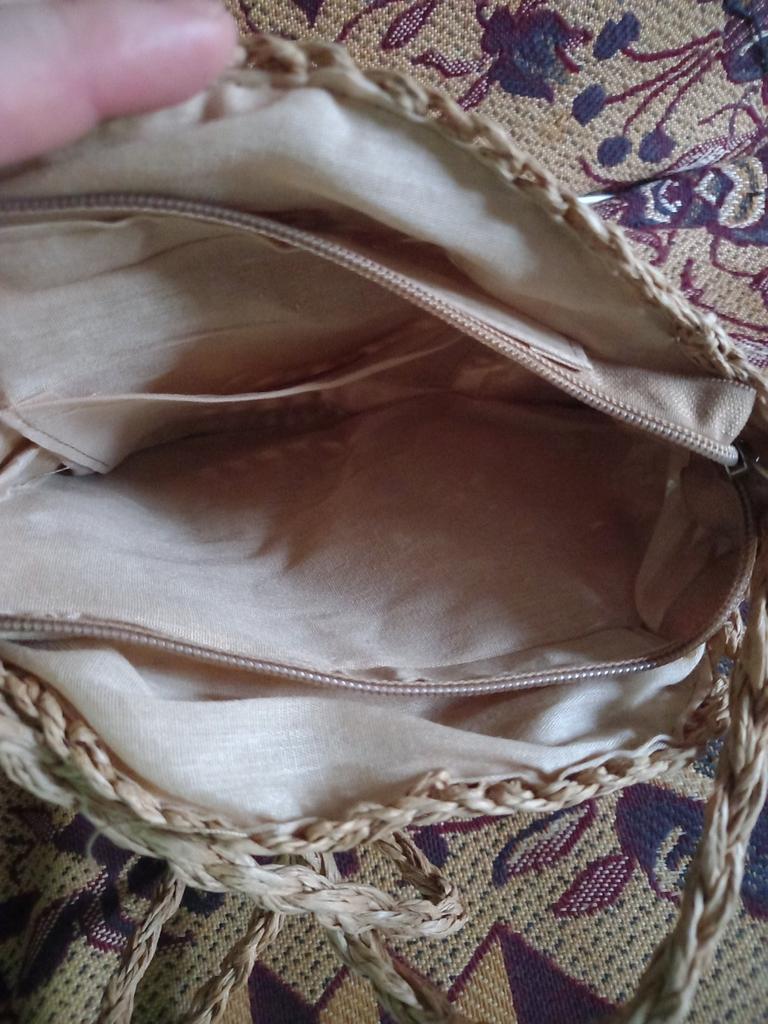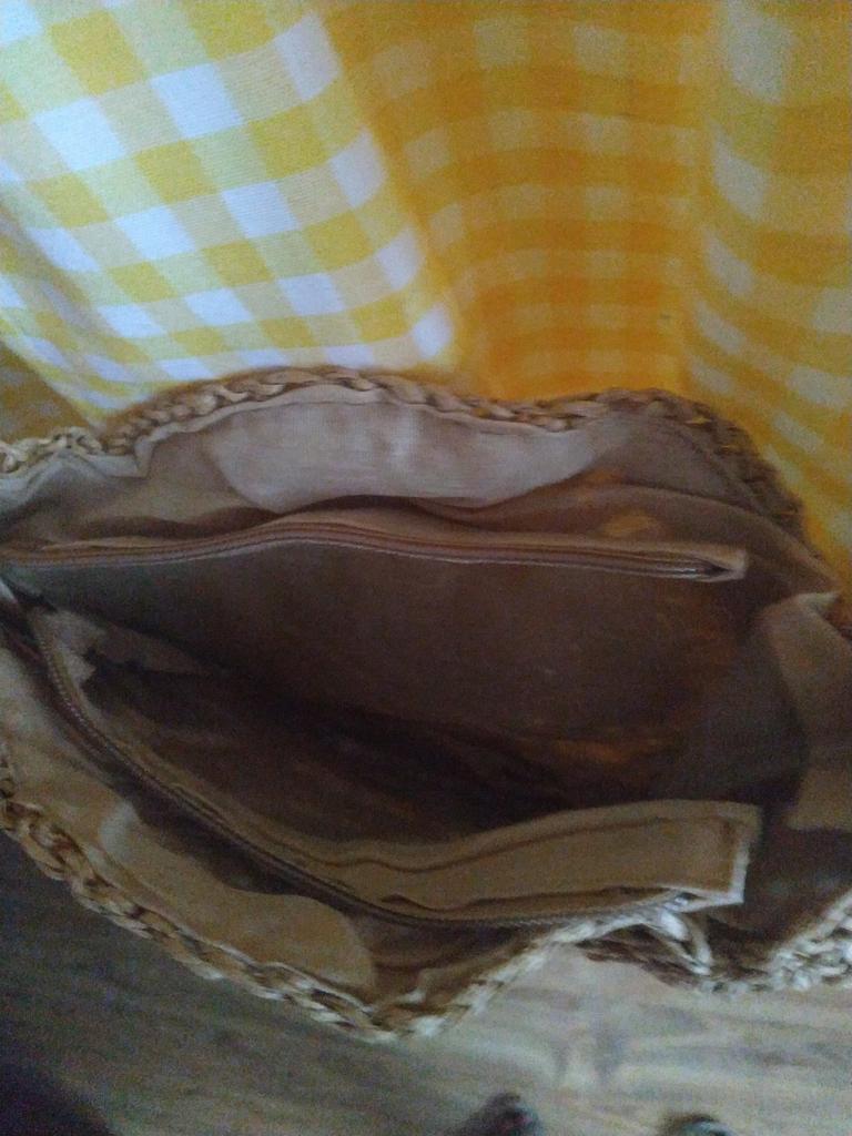 Trochu měkké a velmi lehké (vypadá jako rafie) a plně podšité zipem malá taška na dovolenou, kterou můžete nosit všude