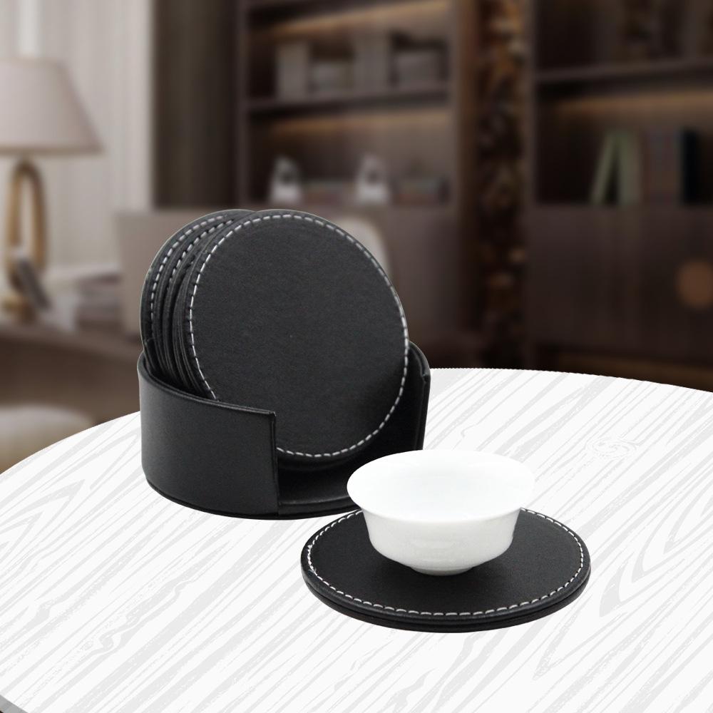 6pcs/set Leather Heat Insulation Coasters Tea Round Leather Tea Coffee Cup Pad Desk Decor