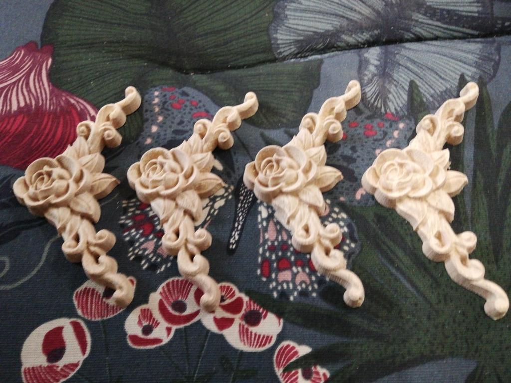 4ks 8*8cm Dřevěná vyřezávaná rohová nášivka Skříňka dveří Růže Nelakovaná Europ