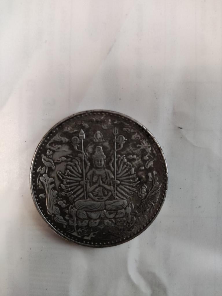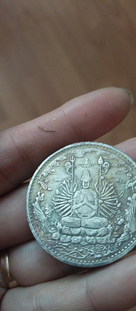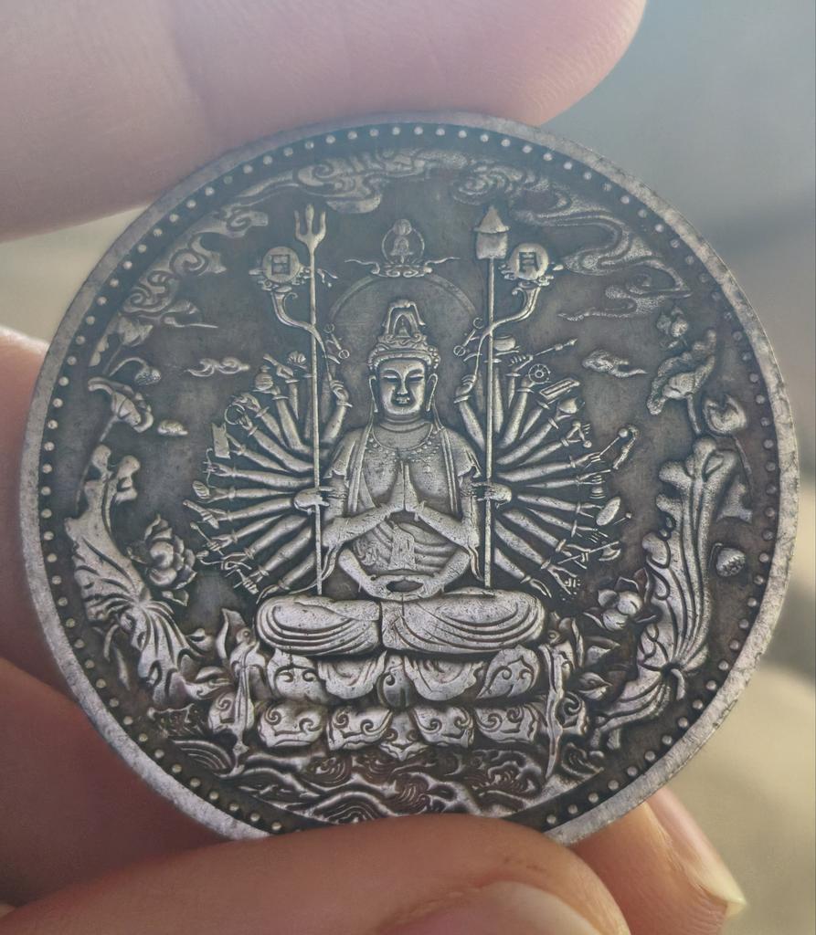 Buddhistická mince Avalokitéšvara Starověká sbírka mincí Řemesla Kopírují starou čínskou stříbrnou minci