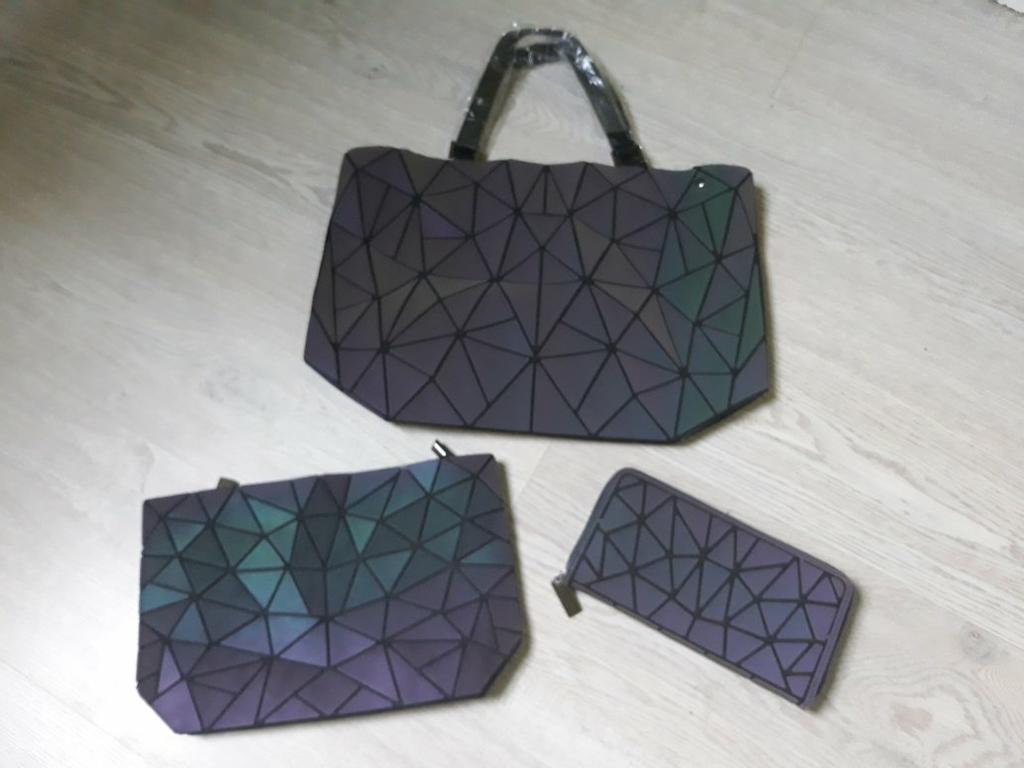 Luminous Bag Set Women Geometry Diamond Tote prošívané kabelky přes rameno Laserové jednoduché skládací kabelky