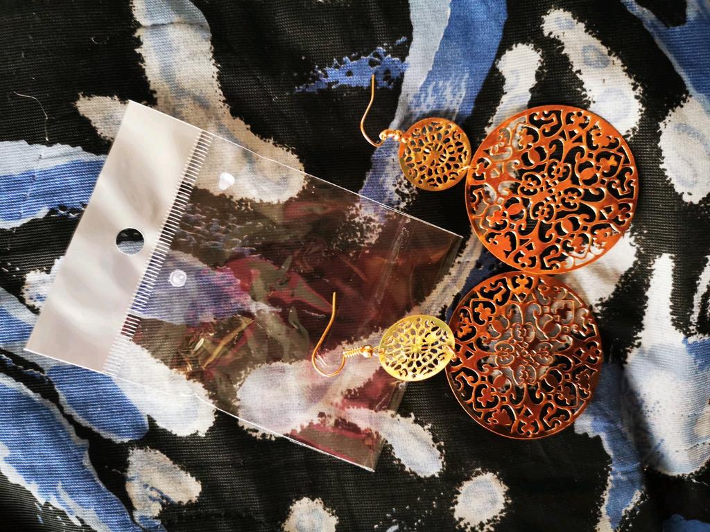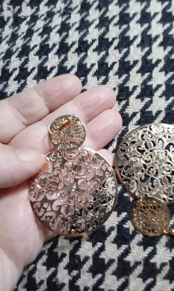 Objednávka byla doručena do 16 dnů doporučeně a byla dobře zabalena v pevné plastové obálce. Ve skutečnosti měl prodejce použít vaši bublinkovou nebo alespoň pěnovou fólii. Naštěstí vše dorazilo nepoškozené. Jedná se o módní bižuterní náušnice, které jsem si objednala ve verzi se slitinovým kovem zlaté barvy. Můžete si také vybrat mezi černou a stříbrnou slitinou. Zvláštním designovým prvkem náušnic jsou dva umně ražené plíšky, které mají zdobený vzor. Segmenty jsou dobře spojené a nenašel jsem žádné vady, kromě toho, že zadní strana je trochu matná a mírně drsná kvůli procesu děrování. Nemůžete si na něm ublížit, jen to neklouže. Součástí dodávky byly i malé průhledné pryžové záslepky pro případ, že byste chtěli přívěsy zajistit zezadu. Vždy však ohýbám ramínka a špunty nepotřebuji. Kromě problému s nedostatečným balením nemám žádné stížnosti a mohu tedy prodejce i produkt s radostí doporučit.