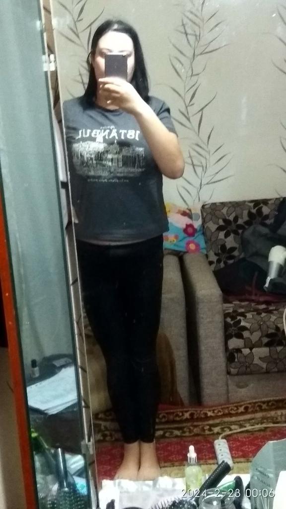Ahoj všichni! Legíny jsou zpočátku malé, ale pak po hodině nošení je velikost tak akorát! Myslela jsem, že to budu nosit ke svetru, jako tuniku, ale vypadá to vulgárně, ale je to ideální pro domácnost.