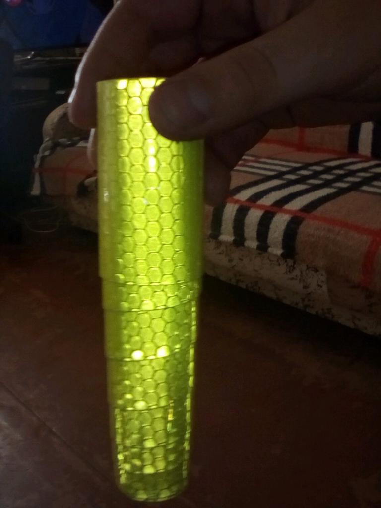 Páska je jako páska. Světlo se odráží. Je poměrně silný a hustý, je lepší nelepit na tenké zakřivené prvky.
