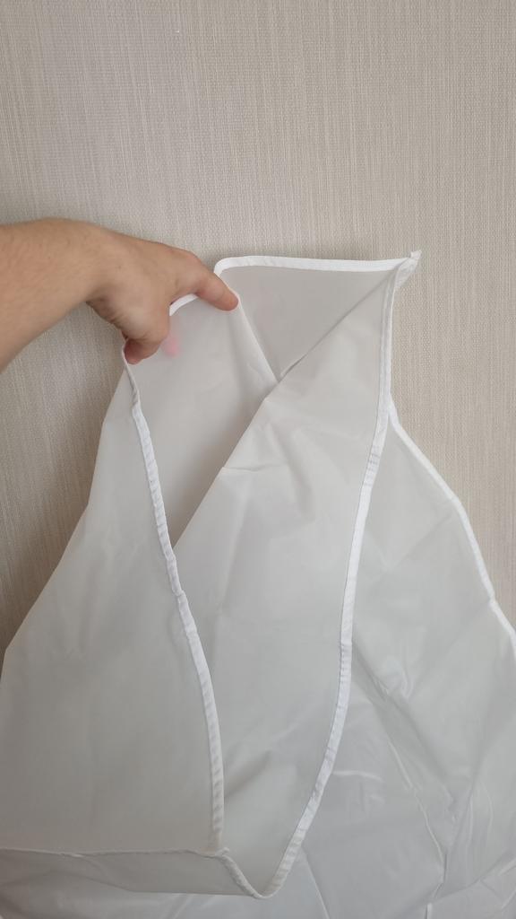 S kvalitou obalu jsem velmi spokojen - tenký, pevný, tlustý, průhledný, bílý, úhledně prošitý. Látka připomíná naškrobený satén, nylon nebo tenkou olejovou tkaninu. Žádný cizí zápach. Velmi spokojen. Díky prodejci a díky Joomovi.
