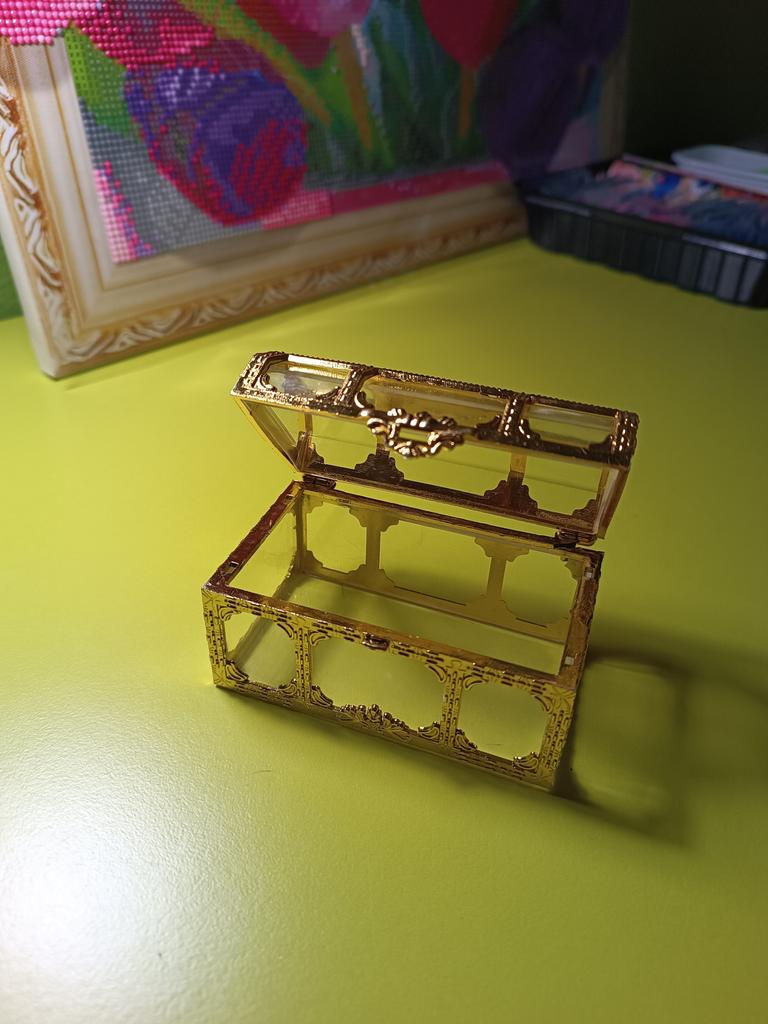 Průhledná plastová krabička, může být na šperky ale nejen 😊 Docela malé rozměry (vidíte na fotce), jemnost, elegantní! Mám radost a přemýšlím, že si jich ještě pár objednám 😉 tentokrát jako dárek! ❤️👍