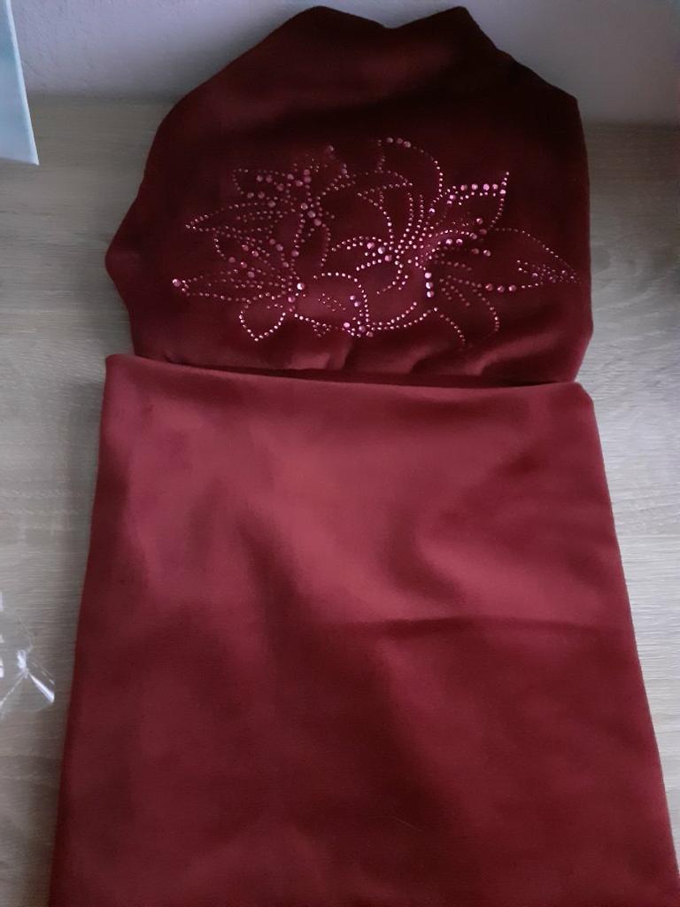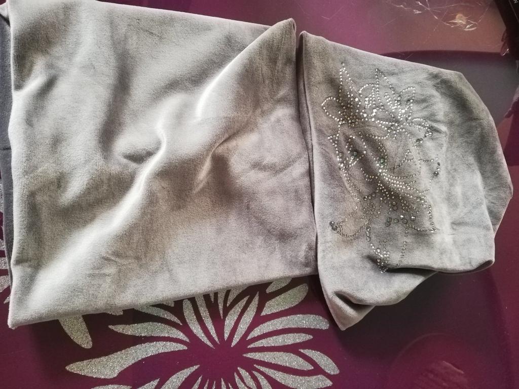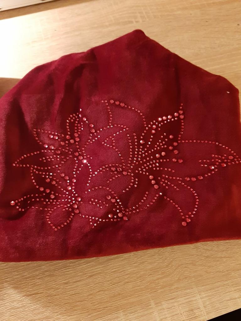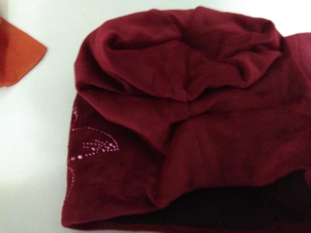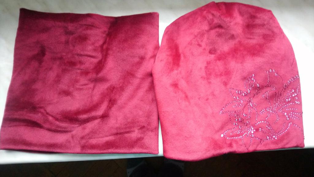 Dobrá kvalita, sametová látka a uvnitř fleece... Šátek není moc pohodlný. Třpytky jsou stále na svém místě