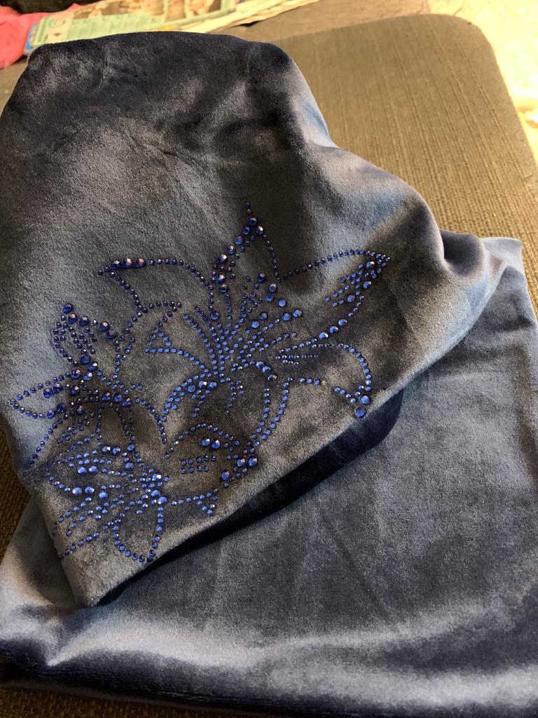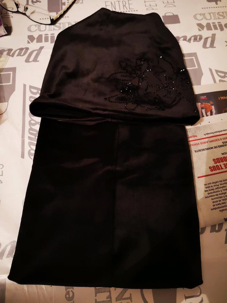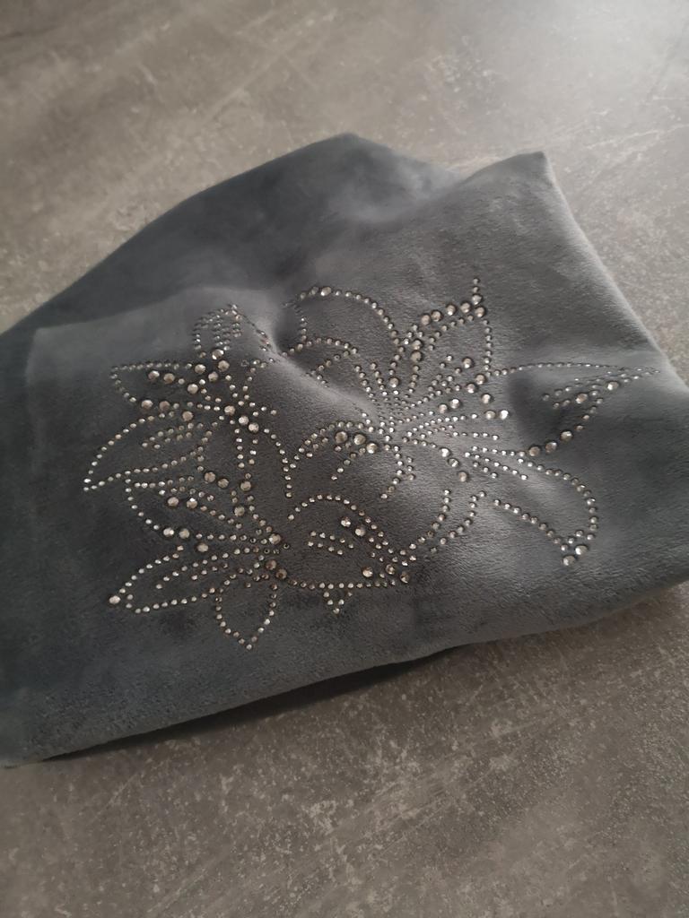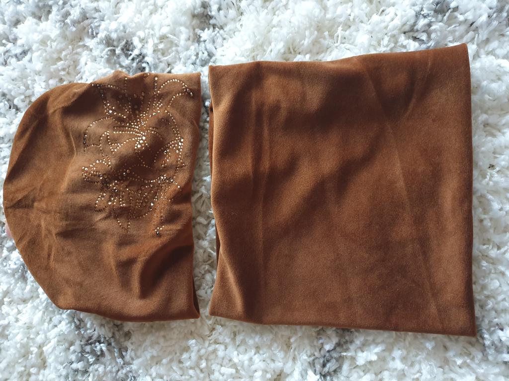 Dobrá kvalita, sametová látka a uvnitř fleece... Šátek není moc pohodlný. Třpytky jsou stále na svém místě