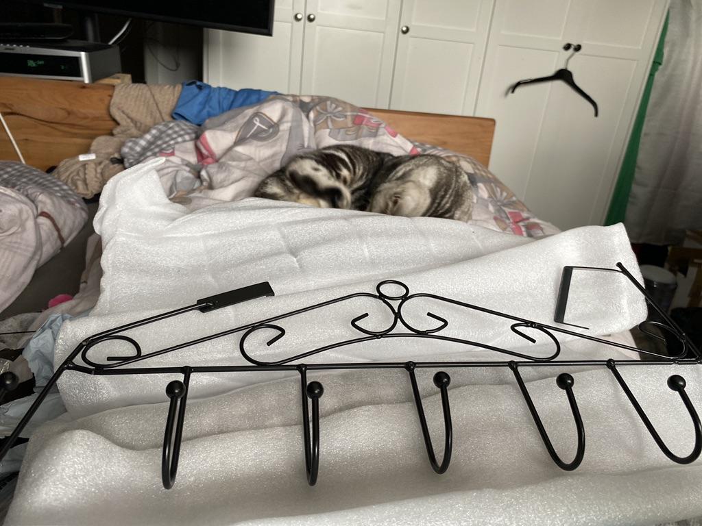 Černý závěsný přívěsek se 7 háčky k zavěšení na dveře. Bylo by fajn, kdyby mi to nedorazilo úplně ohnuté!!!!🥹🙃😳😡🦋