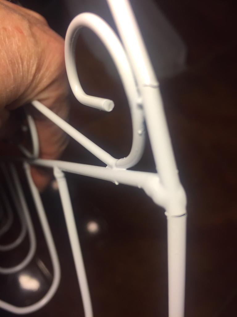 vešak je poškozeny, křivý a prasklá , špatně zabaleny. Viz foto