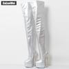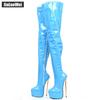 Stehenní vysoké boty na platformě JIALUOWEI Dámské 22cm Extrémně vysoký podpatek Zlatý kovový podpatek Sexy fetišové jehlové společenské boty nad kolena