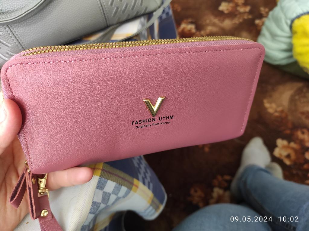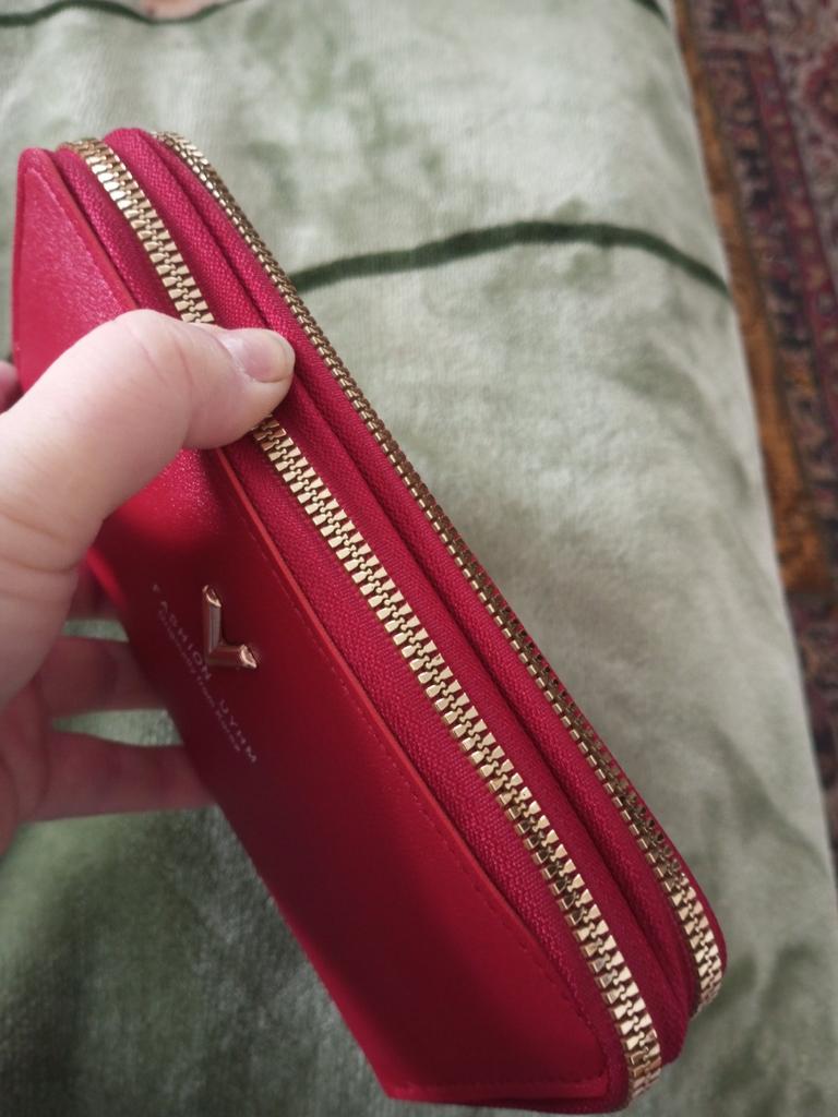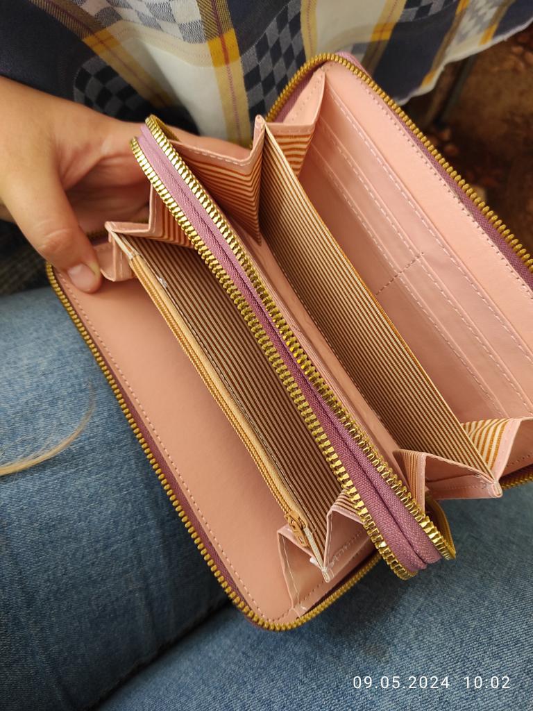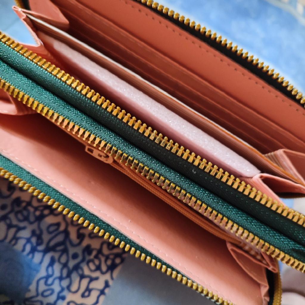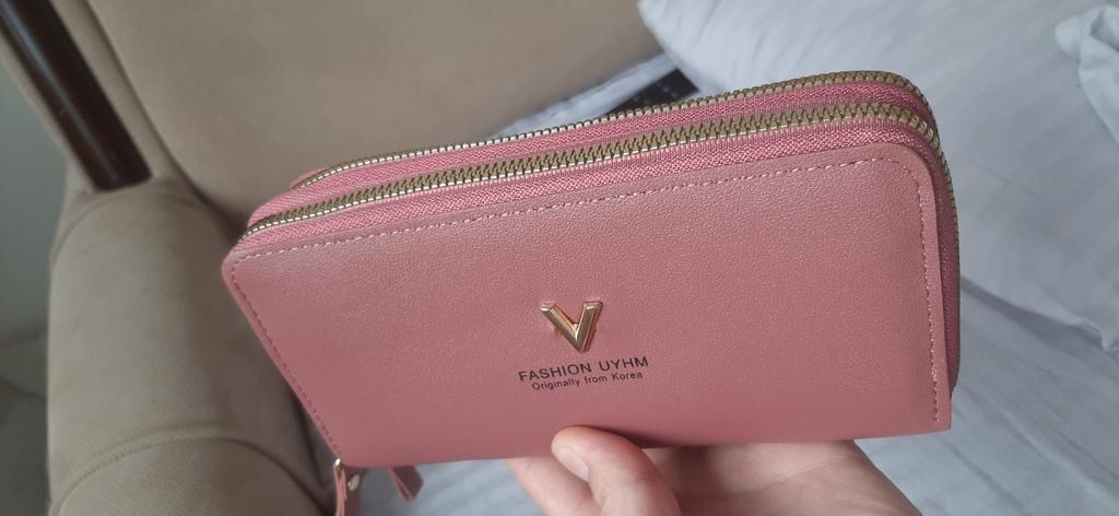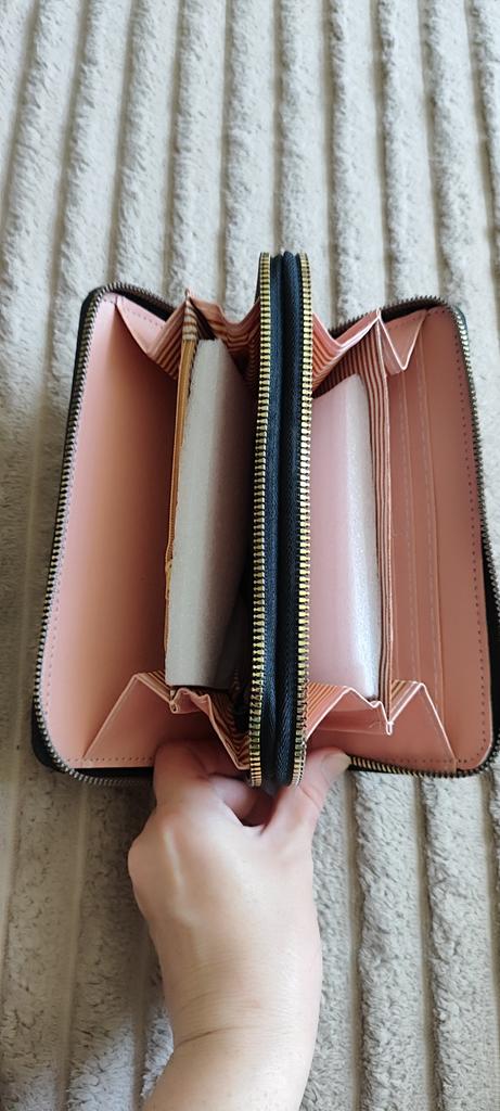 Krásná a prostorná peněženka. Používám jí od té doby co přišla a je super 🤩🤩🤩 Má 2 velké kapsy a v nich místo na bankovky a kapsičku na drobné. Místo i na karty. Popruh na ruku a super zipy. Dorazila v celkovém balíčku od joom cca do měsíce od objednání.