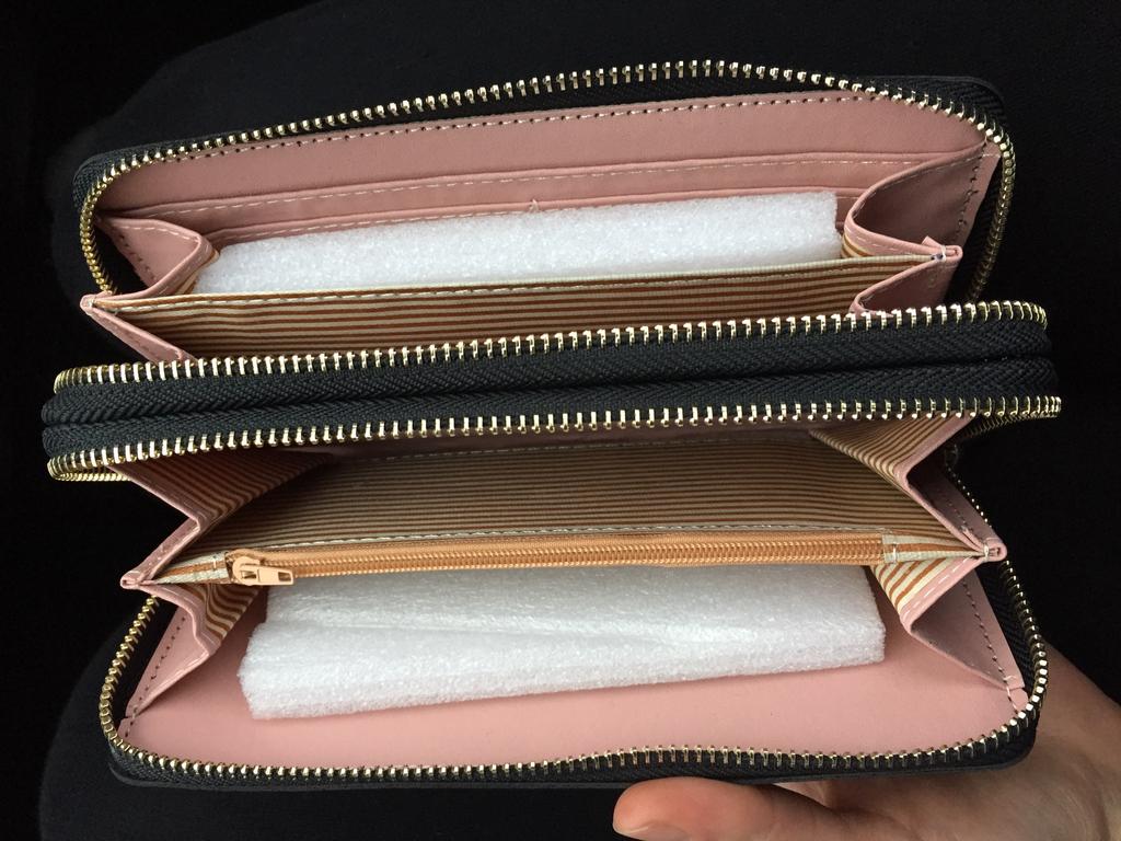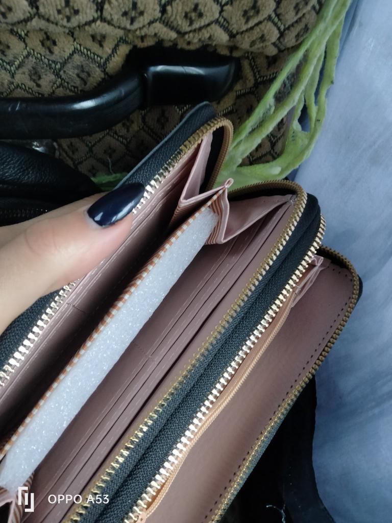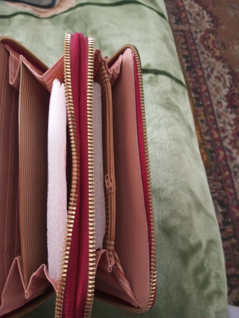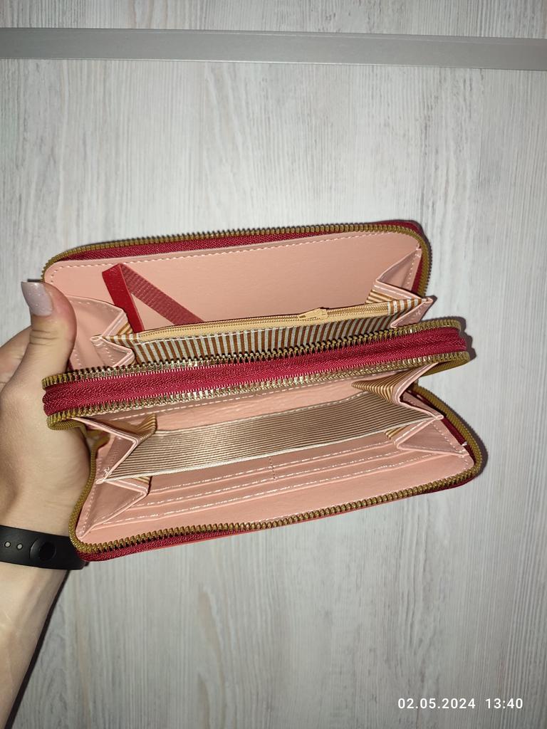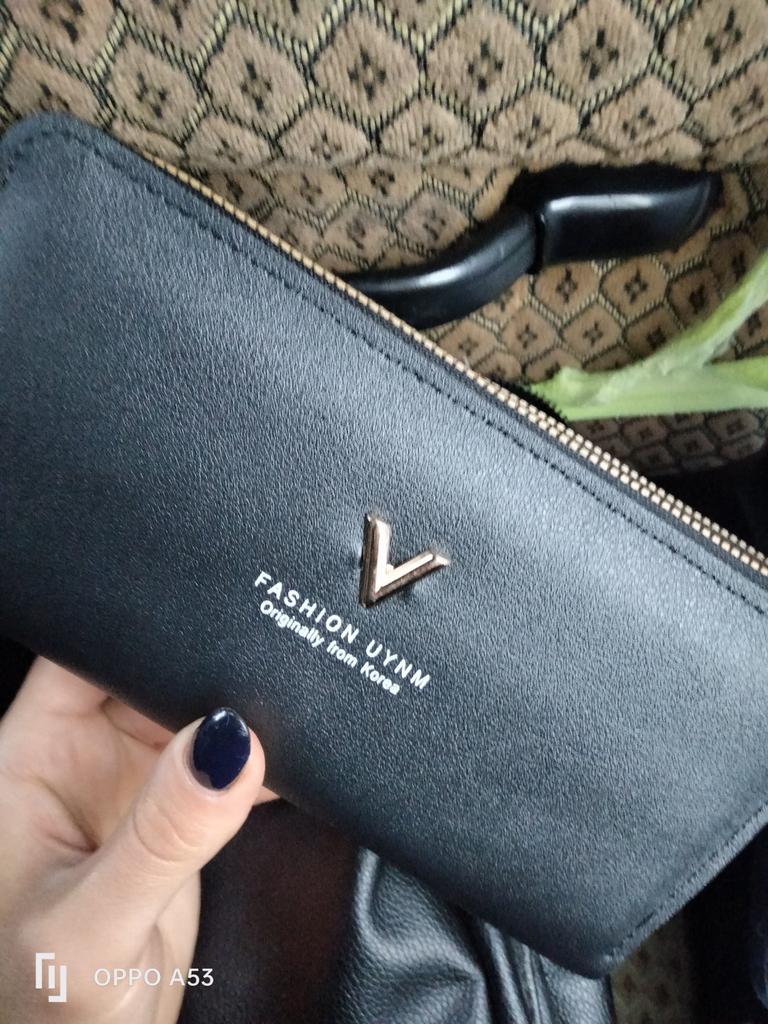Krásná a prostorná peněženka. Používám jí od té doby co přišla a je super 🤩🤩🤩 Má 2 velké kapsy a v nich místo na bankovky a kapsičku na drobné. Místo i na karty. Popruh na ruku a super zipy. Dorazila v celkovém balíčku od joom cca do měsíce od objednání.