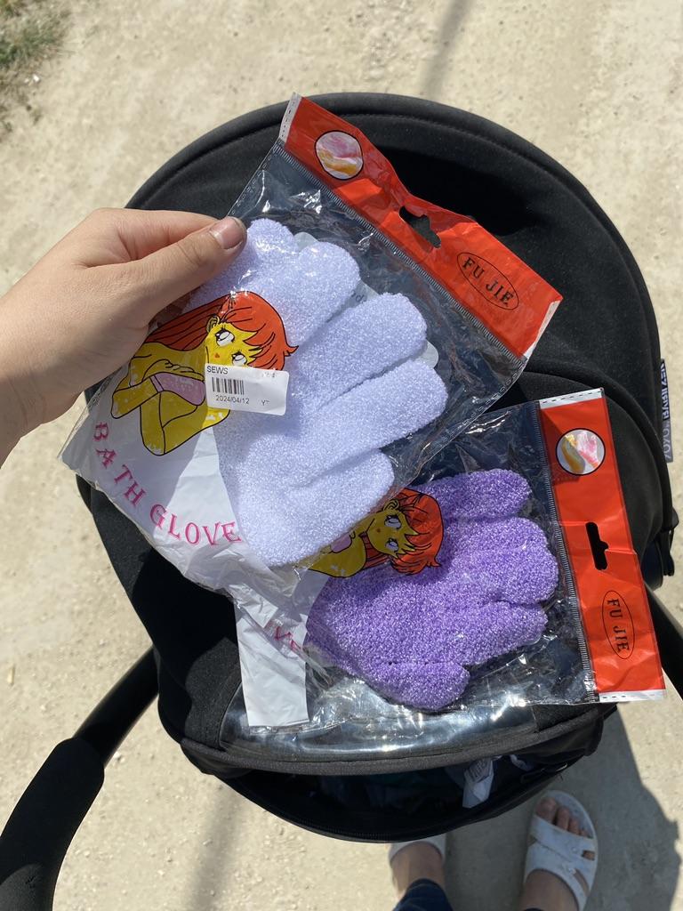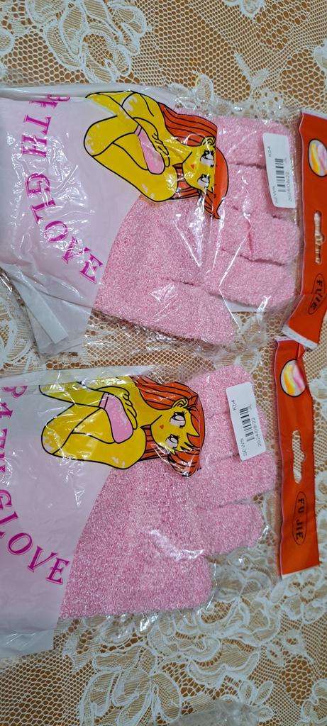 Skvělé rukavice do koupele, tělový peeling, obličej. Velikost je do malé ženské (dětské) ruky Kvalita dobrá - 2ks. Produkt doporučuji, Joom - děkuji.