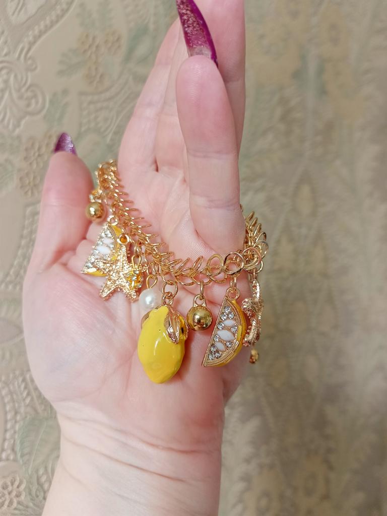 Diamantové šperky Creative Summer Beach Women Náramek s náramkem s umělou perlou Hvězdice s citronem
