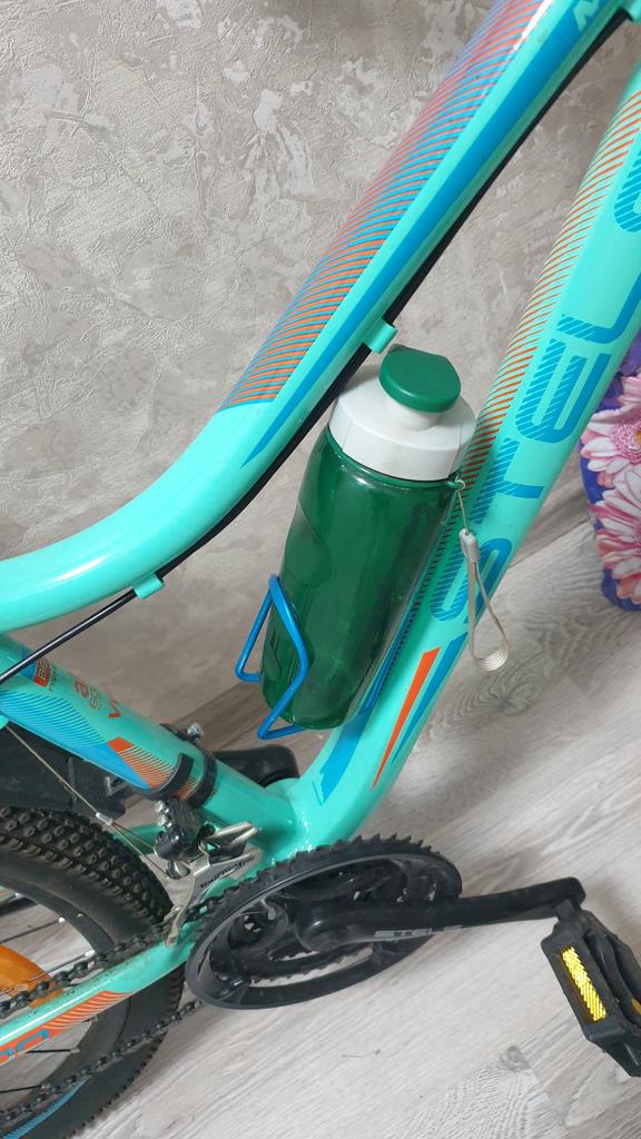 Držák na lahev vypadá dobře, bohužel je trochu ohnutý, ale je v pořádku. Láhev na pití se hodí ke všemu.