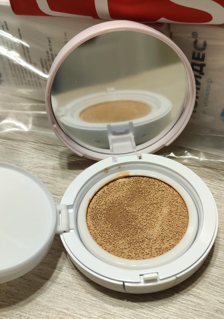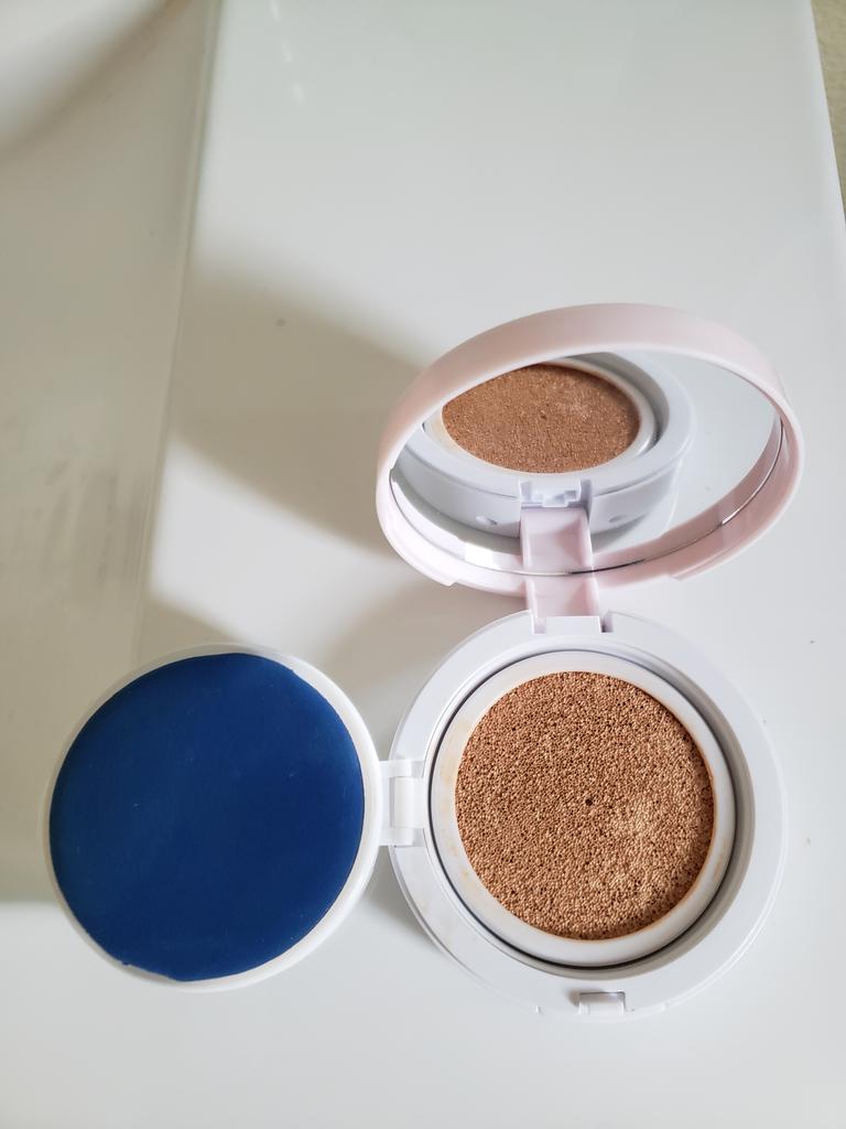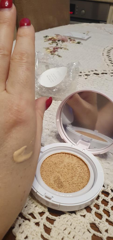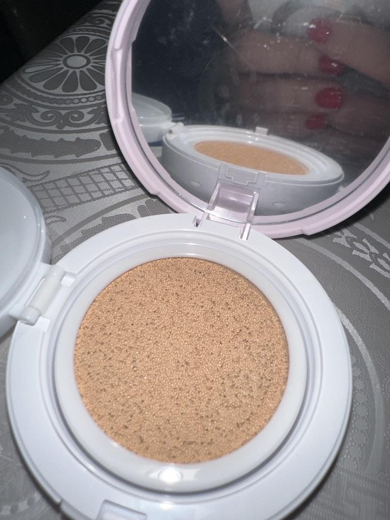 Pěkný🤩 Přestože má tento polštářek SPF 50, nanáší se hladce a jemně na pokožku, aniž by zanechával mastný lesk jako jiné krémy SPF. Také má velmi neutrální, lehkou a příjemnou vůni. Tón 23 je vhodnější pro letní období, i když mám bledou pleť a v zimě používám # 21