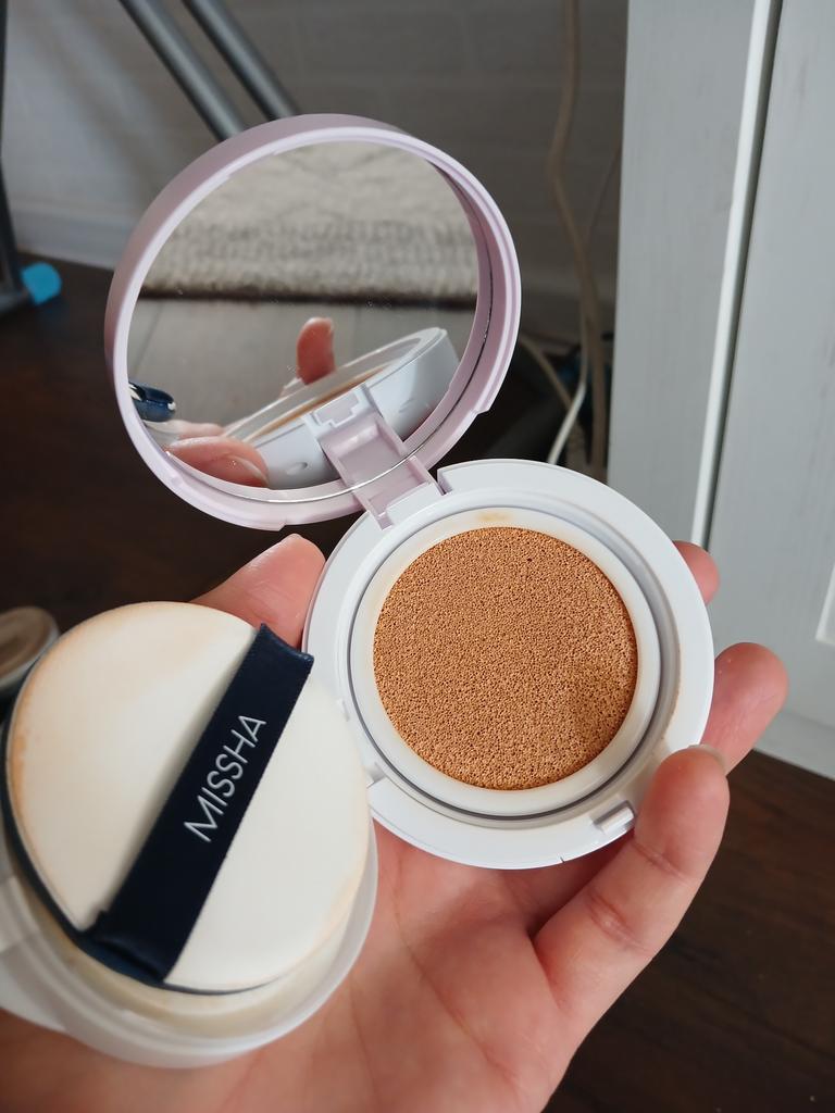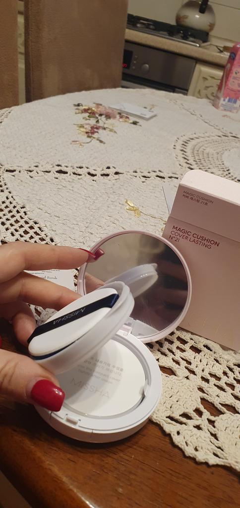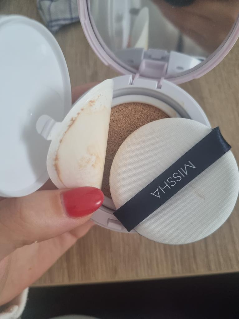 Tento polštářkový základ dělá to, co slibuje, je na mě trochu moc lehký, ale myslím, že je to dobře. Bohužel je houbička na moje malíčky příliš velká, ale jinak je to opravdu velmi dobrý základ. Dobře se roztírá a nelepí 't cover it' Není příliš silný, také se velmi dobře kombinuje s mým korektorem a dorazily rychleji, než jsem si myslela, takže ráda koupím znovu🤩 teď mám dobrý základ od L'Oréal, dobrý základ, který můžete kupte si zde i vodovou bázi s houbovým aplikátorem a pak mám i podkladovou bázi od Misshy.Teď se nemůžu rozhodnout, kterou použít jako první, všechny jsou víc než moc dobré 🥰