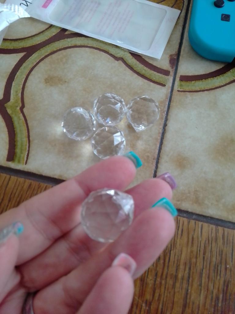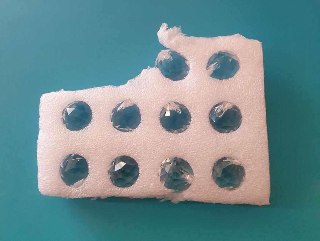 Je zde 10 křišťálových koulí, každá s otvorem na zavěšení. Některé mají zvláštnosti, protože byly v obalu příliš těsné.
