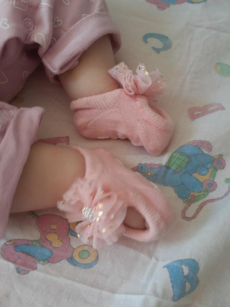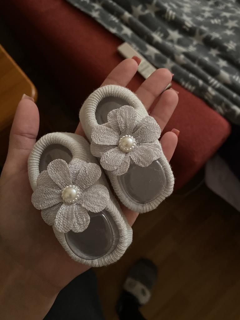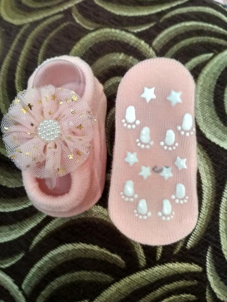 Čelenky jsou z pružné krajky, boty-ponožky pruží a mají protiskluzovou podrážku