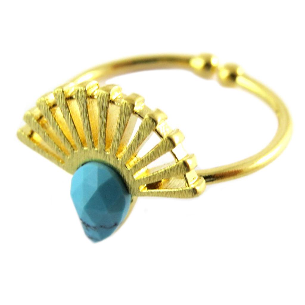 7bis [Q1473] - Ručně vyráběný prsten 'Boho' tyrkysový zlatý (vějíř)- 14x11 mm