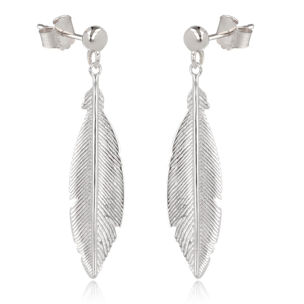 Les Trésors De Lily [Q7040] - Stříbrné náušnice 'Boho' stříbrné (rhodiované) - 35x8 mm (peří)