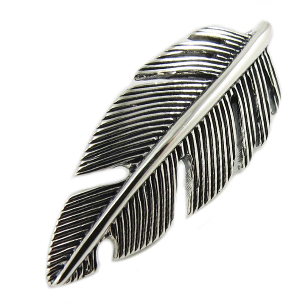 Les Trésors De Lily [Q7504] - Stříbrný ručně vyráběný přívěsek 'Boho' postříbřený patinovaný (peříčko) - 30x12 mm