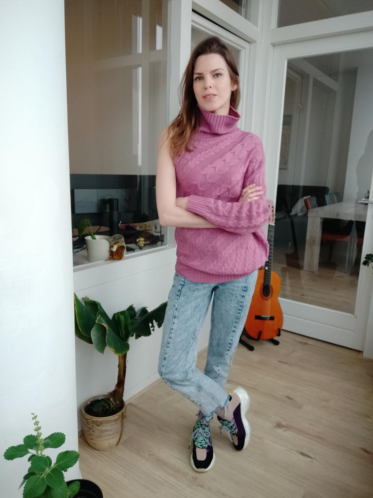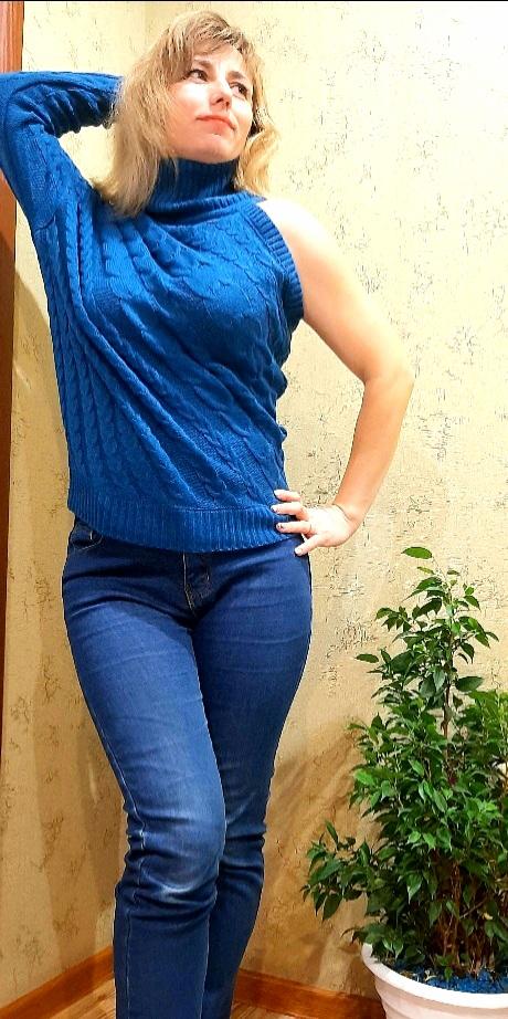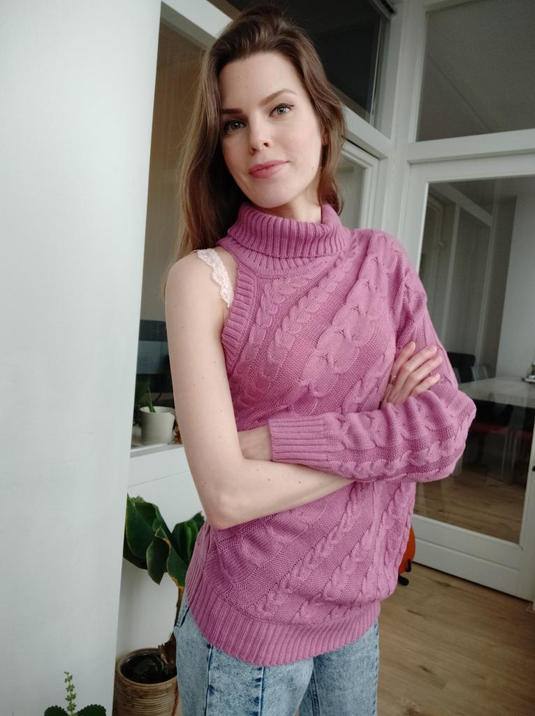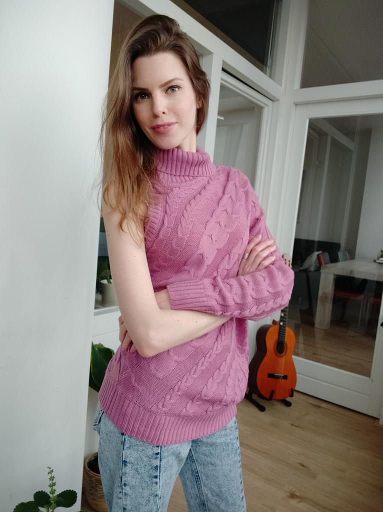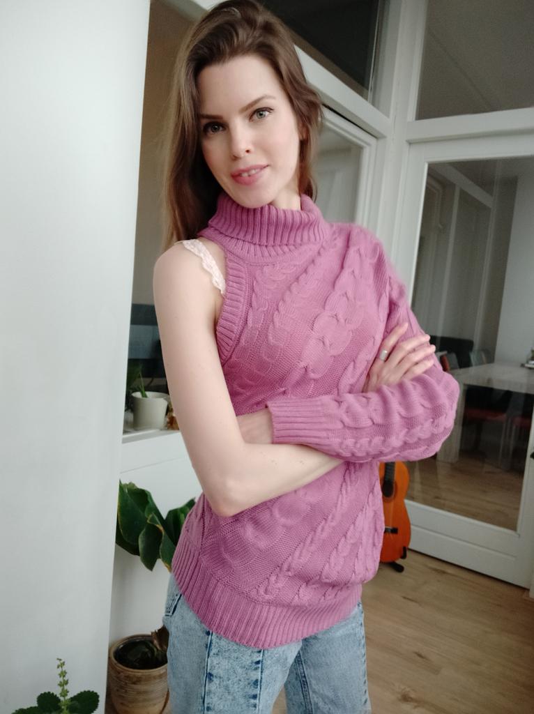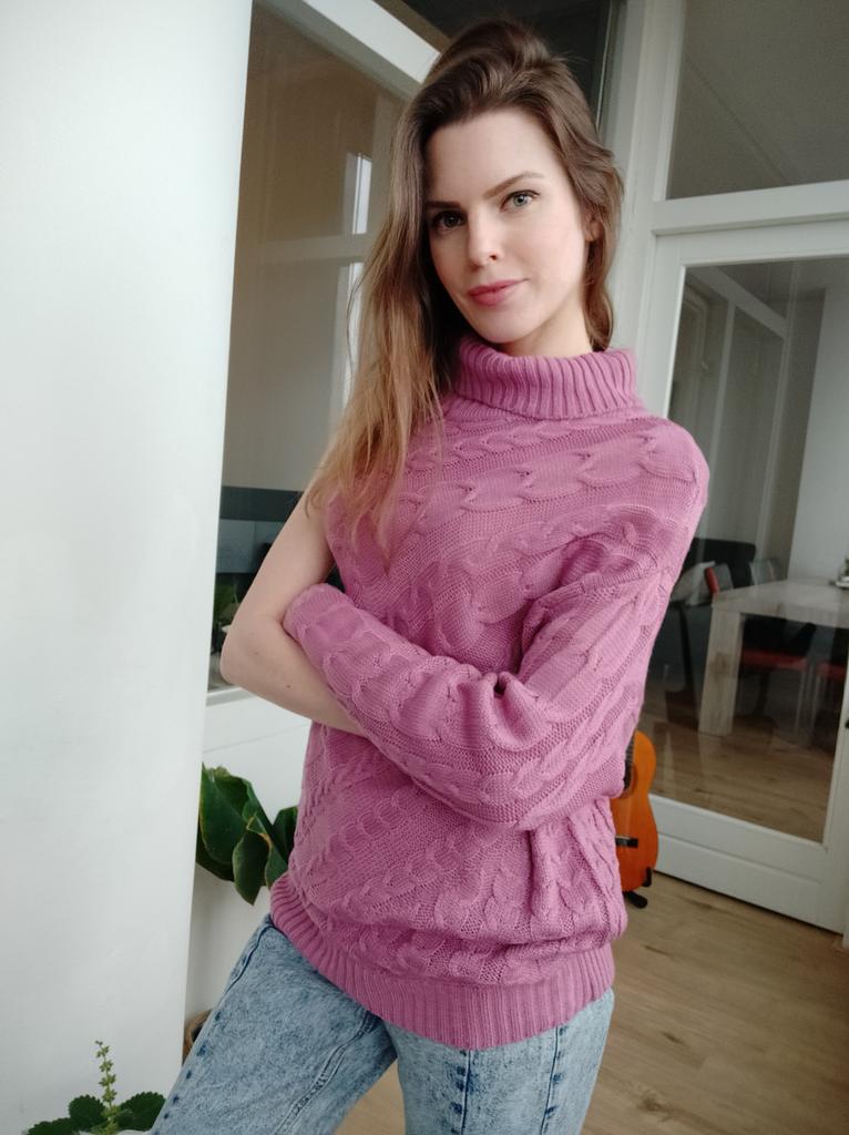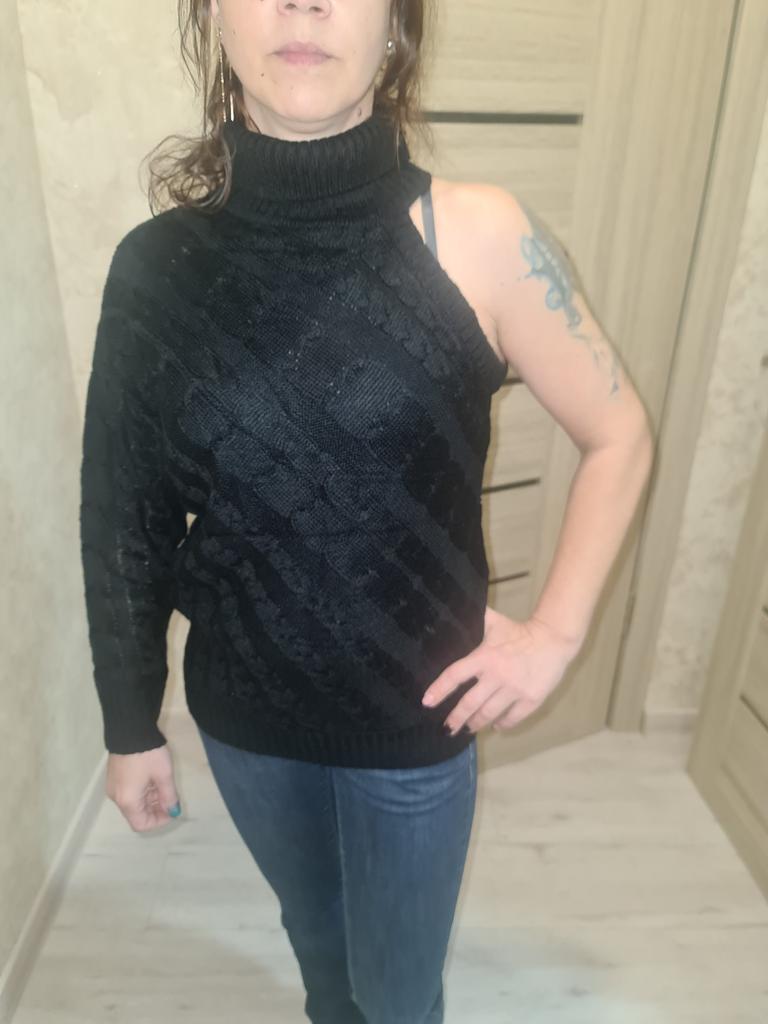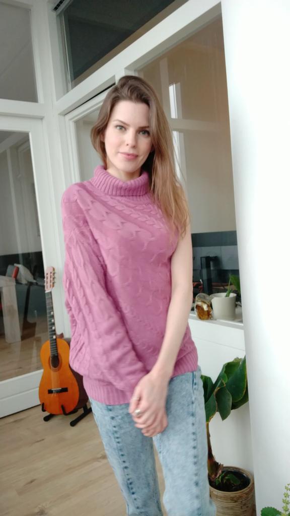Svetr, který rozhodně nezůstane bez povšimnutí ostatních. Je to můj druhý nákup tohoto svetru, první byl pro dceru a teď jsem ho dostala pro sebe. Tato položka je jednoduchá, ale stylová; svetr lze nosit do baru, kavárny nebo jen tak na chladný večer na procházku. Vypadá skvěle se vším. Krásné kabelové pletení, stojáček, jeden lehký netopýří rukáv. U výstřihu chybí druhý rukáv. Doporučuji Mám rád neobvyklé věci, jako je tato.