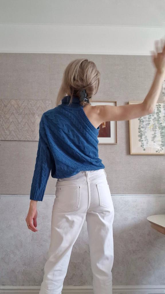 Je to krásný modrý svetr s jedním rukávem. Je hustá, ale možná ne dostatečně hustá pro velmi chladné podnebí. Je dlouhá a velmi dobře přiléhá k tělu. Má pletené zdobení. Cesta do Španělska před současnou zdravotní krizí trvala 2 týdny . #zůstat doma Pro více informací mě sledujte na mém Instagramu @byanisimonn.