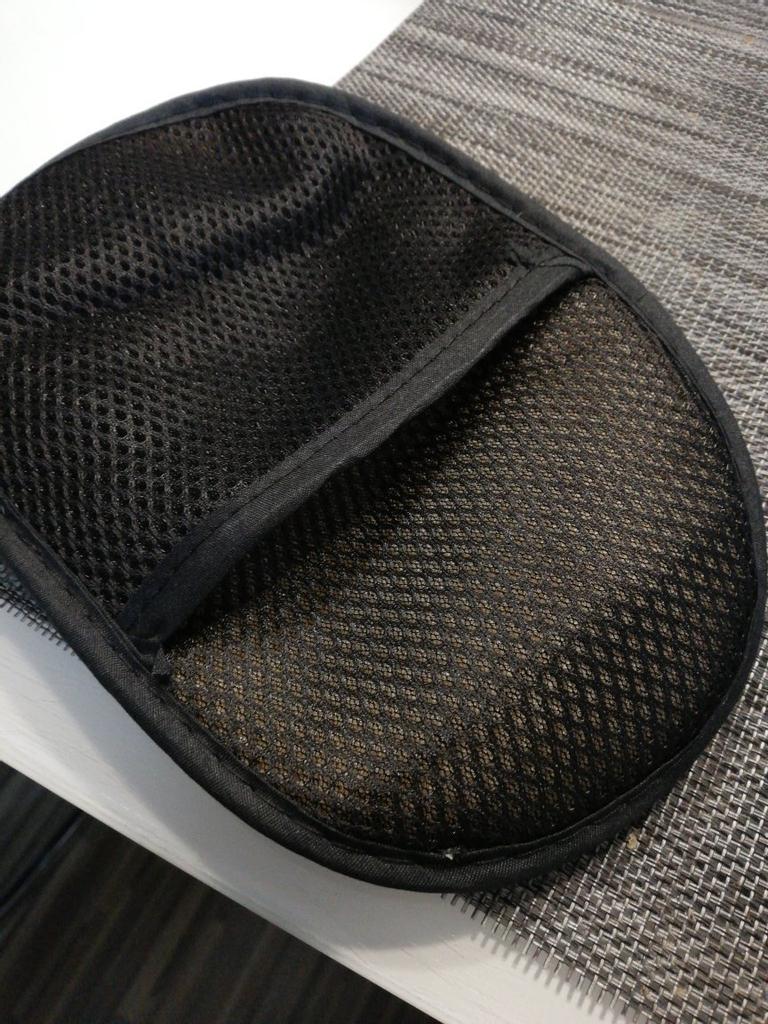 Je velmi měkký a v místě, kam dáte ruku, má rozdělení na dvě kapsy.