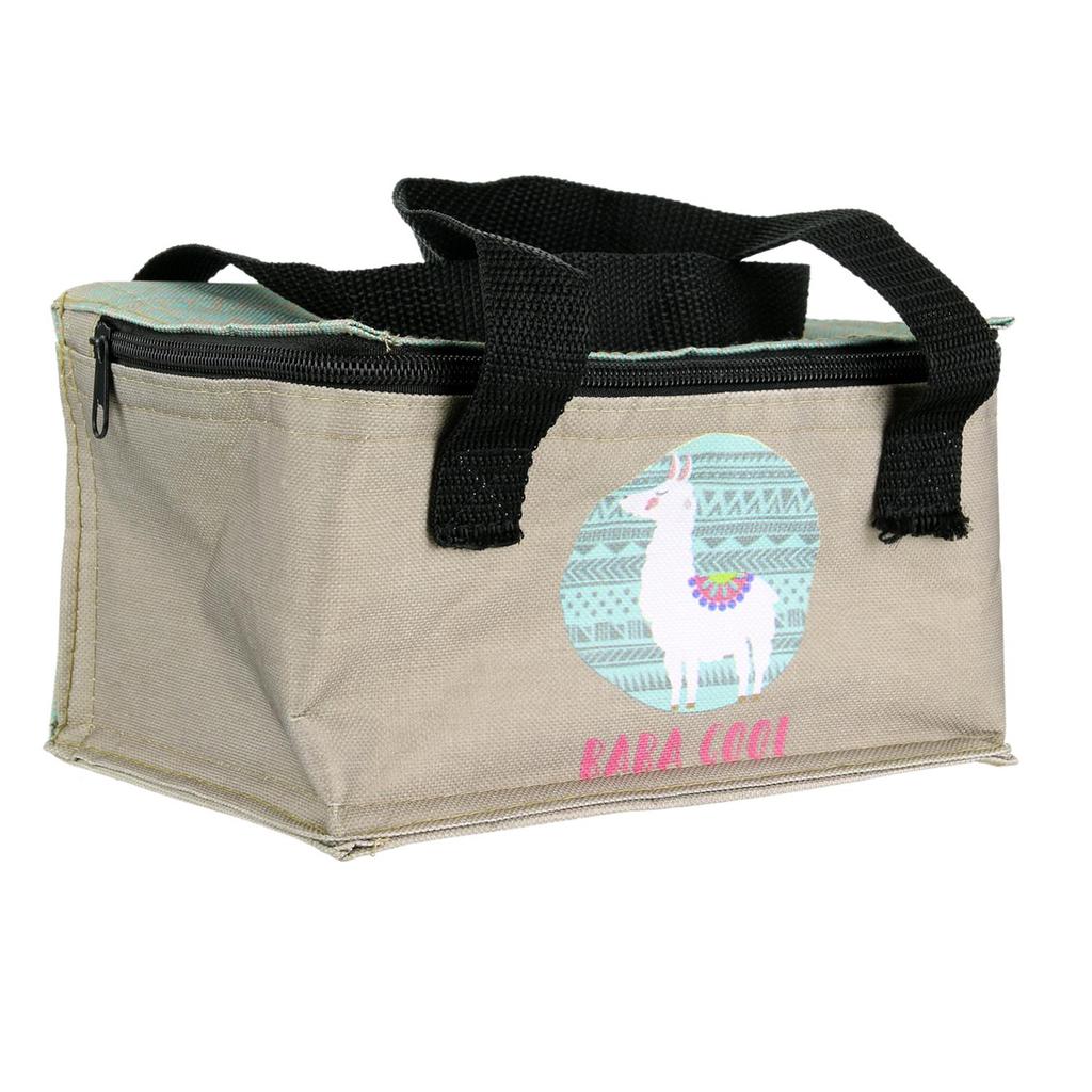 Les Trésors De Lily [Q4460] - Obědový box / Termo taška na jídlo 'Lama Mania' tyrkysová béžová (baba cool) - 21. 5x14. 5x12 cm