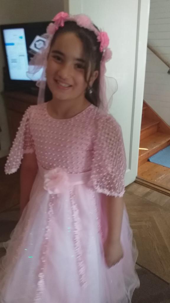Velikost sedí na dívku vysokou 126-127 cm. Dívka je hubená, ale punčocháče se možná ještě trochu roztahují. Bez závad.