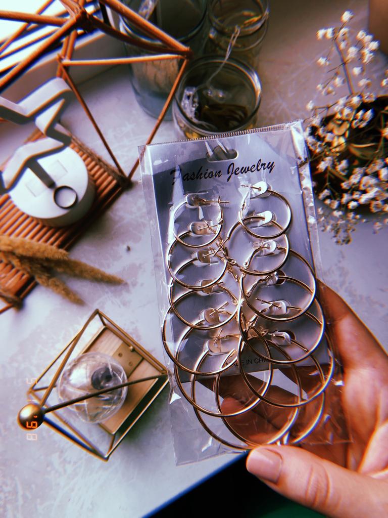 6 párů / sada retro závěsných velkých kruhových náušnic Dámská Steampunková spona do uší
